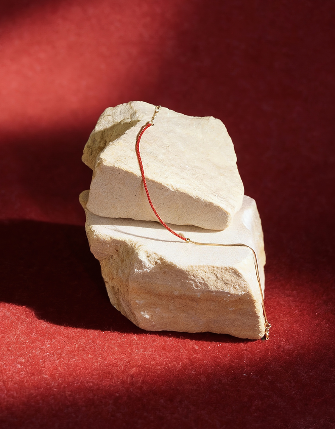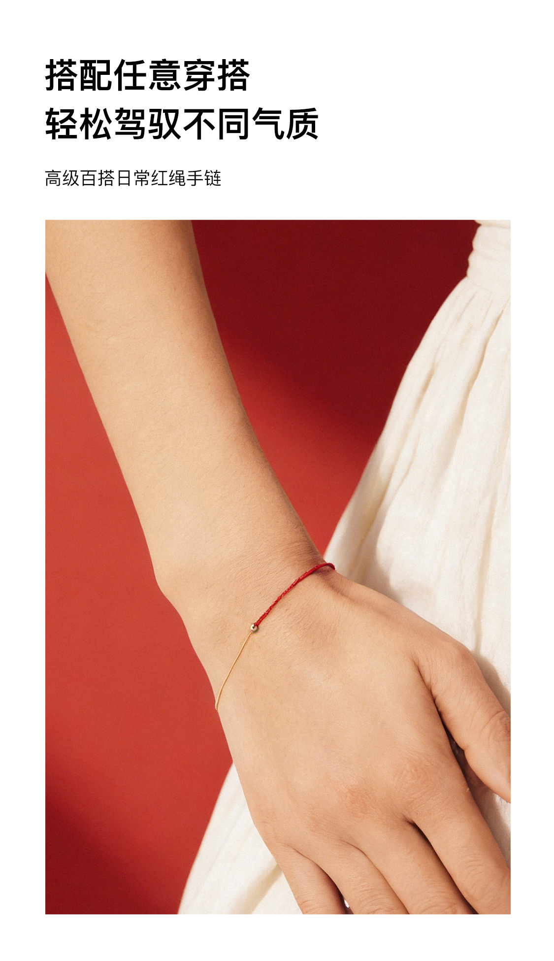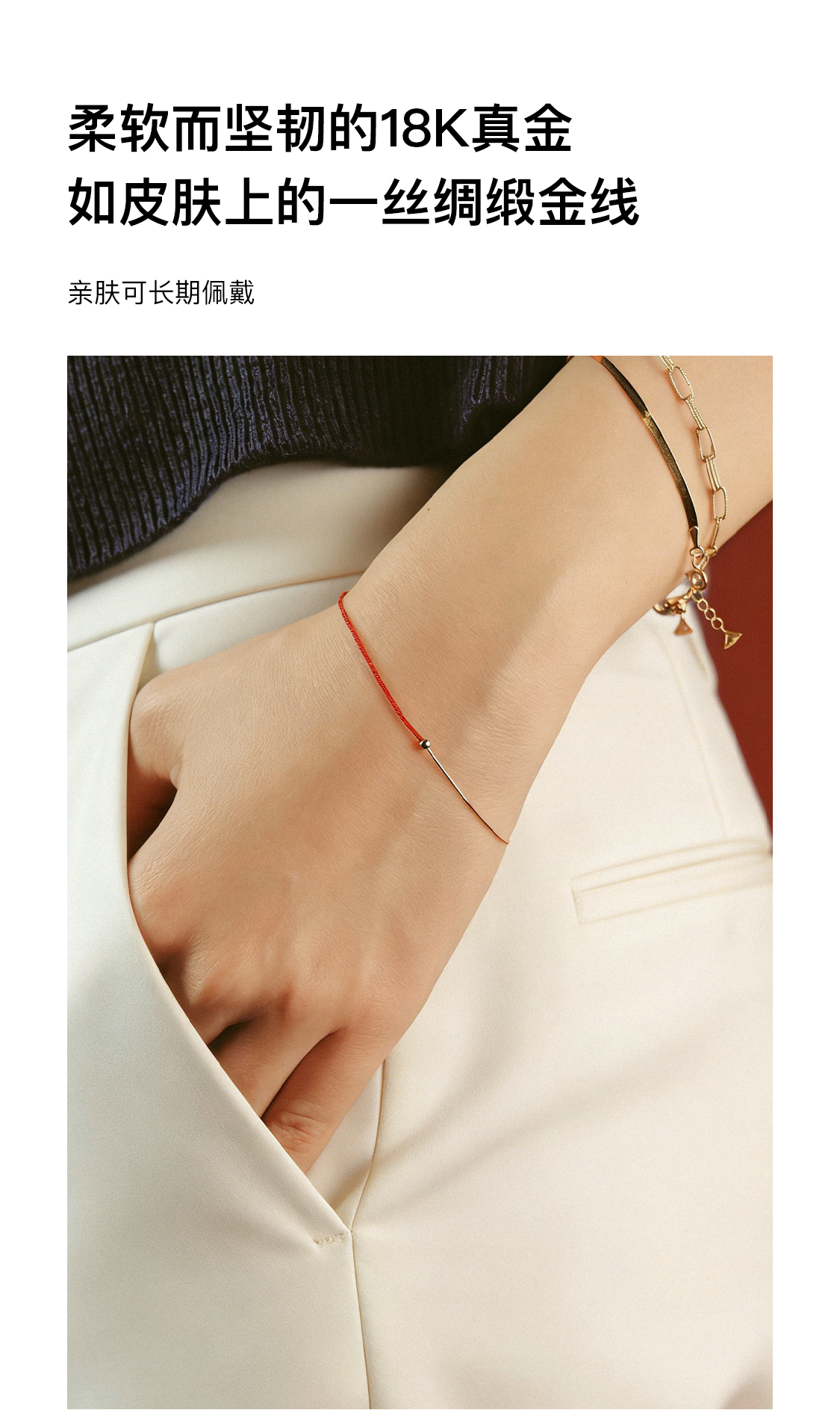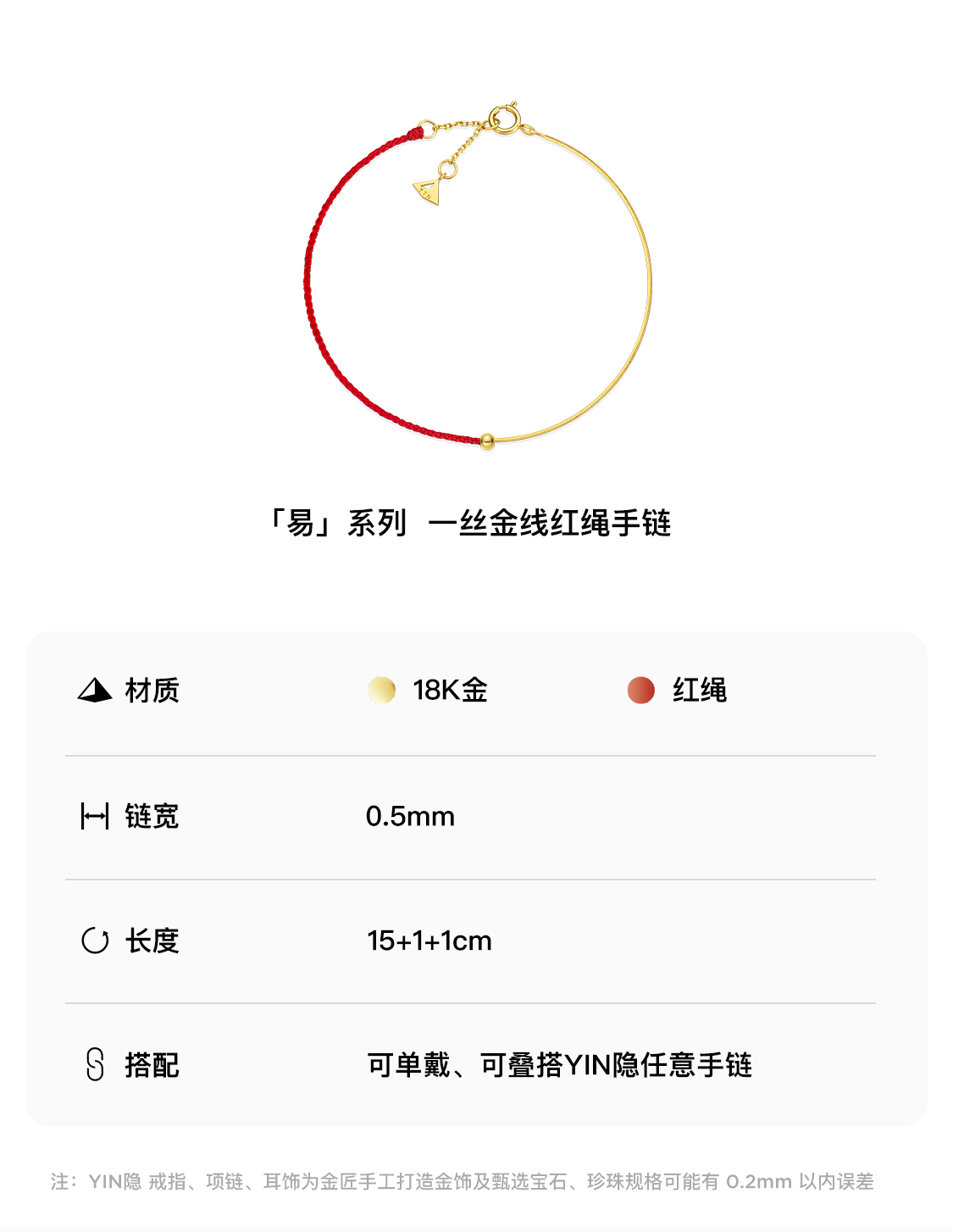 「易」系列 一丝金线蛇骨手链-半红绳版