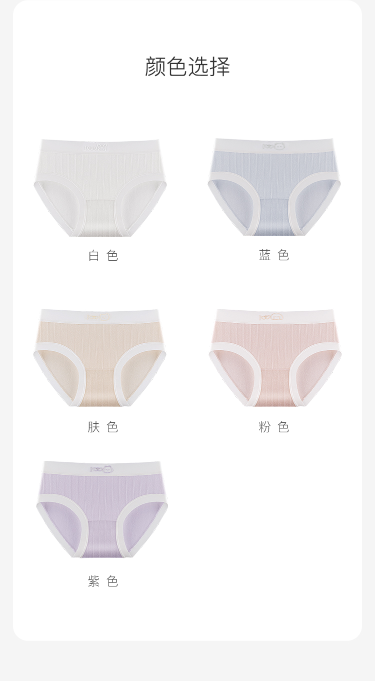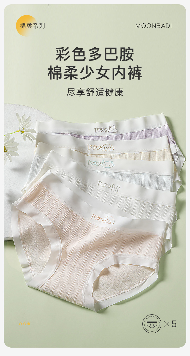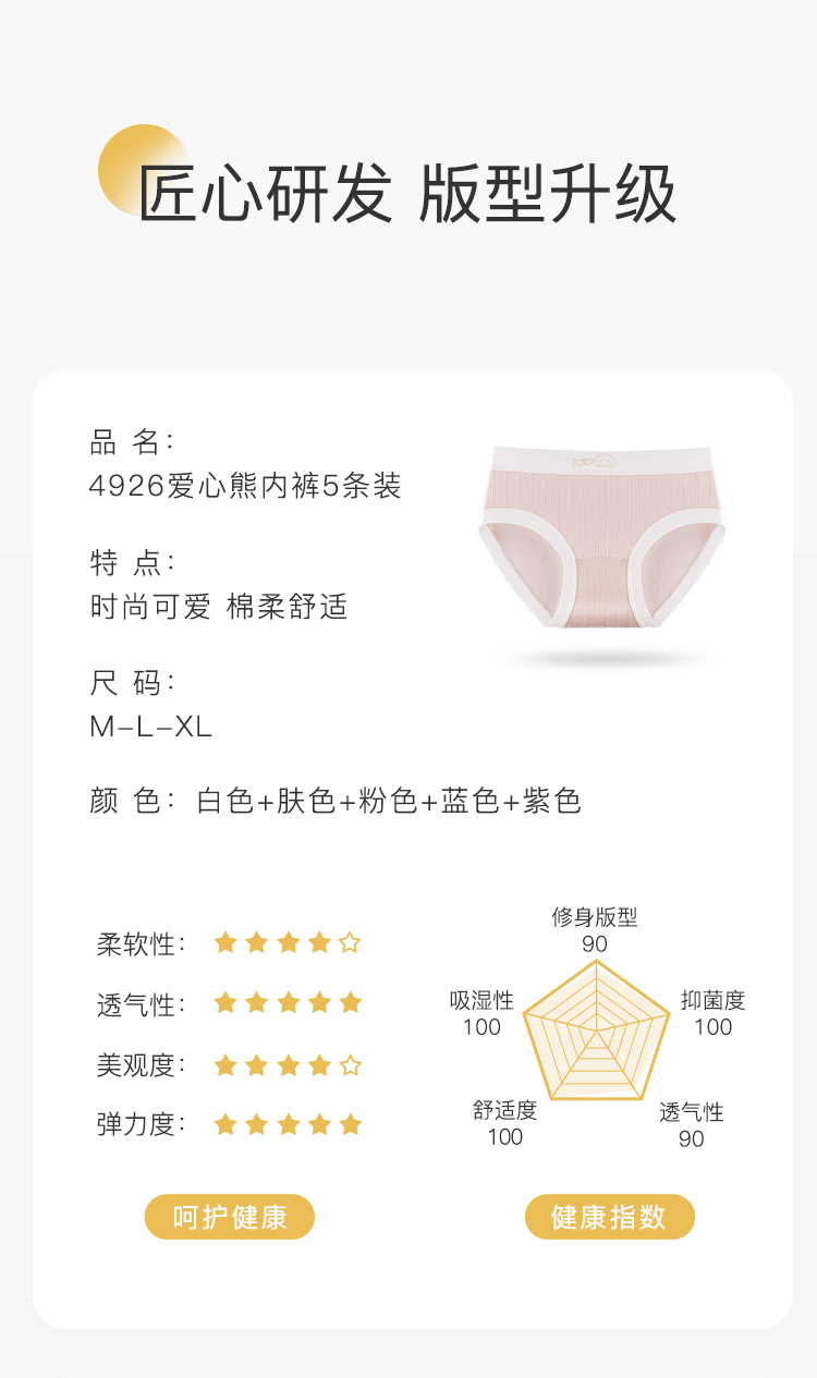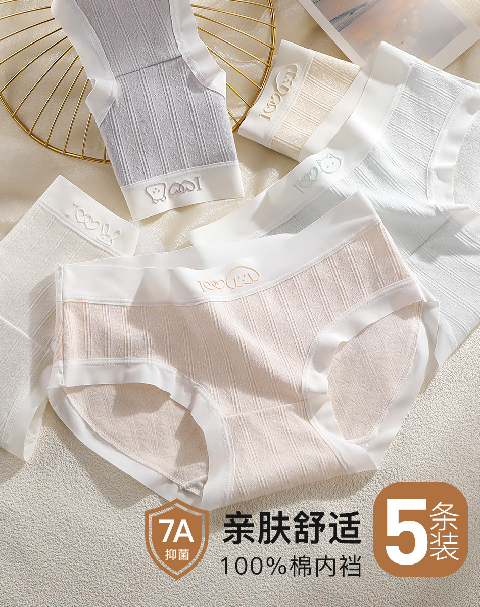 【5条装】7A抑菌100%底棉裆中腰内裤女棉柔舒适高弹透气4926爱心熊内裤