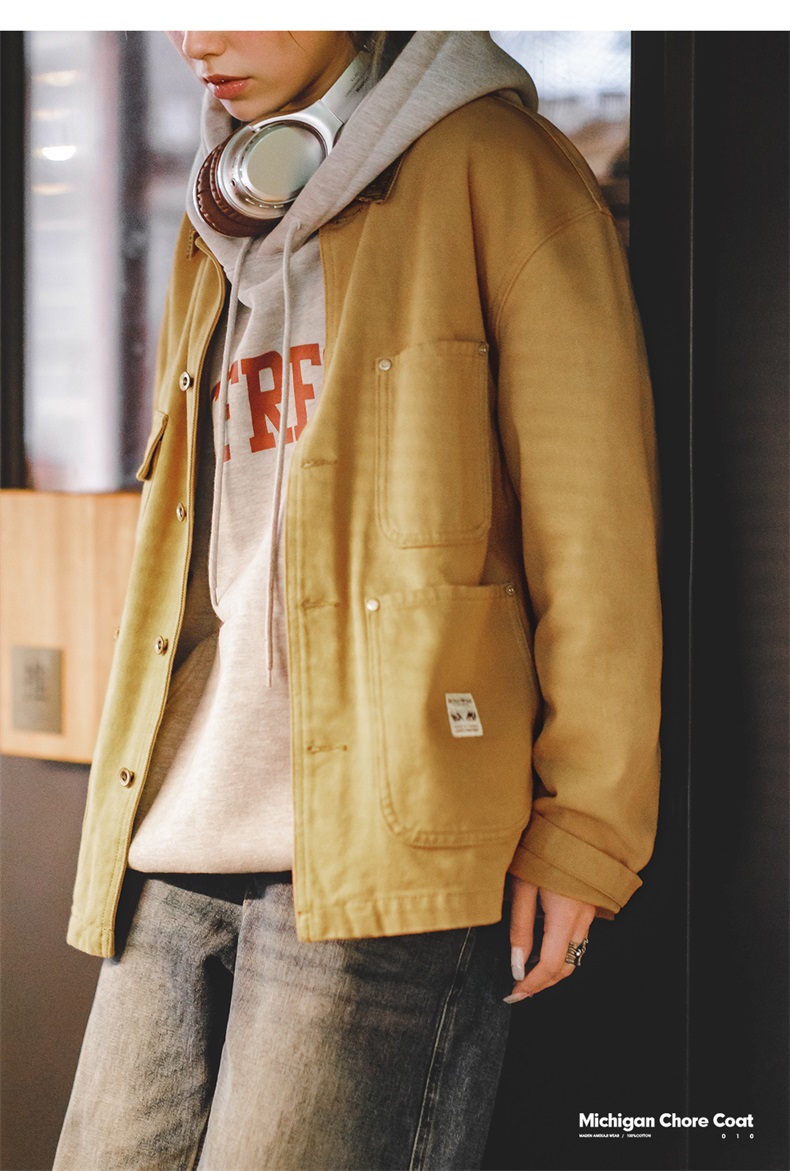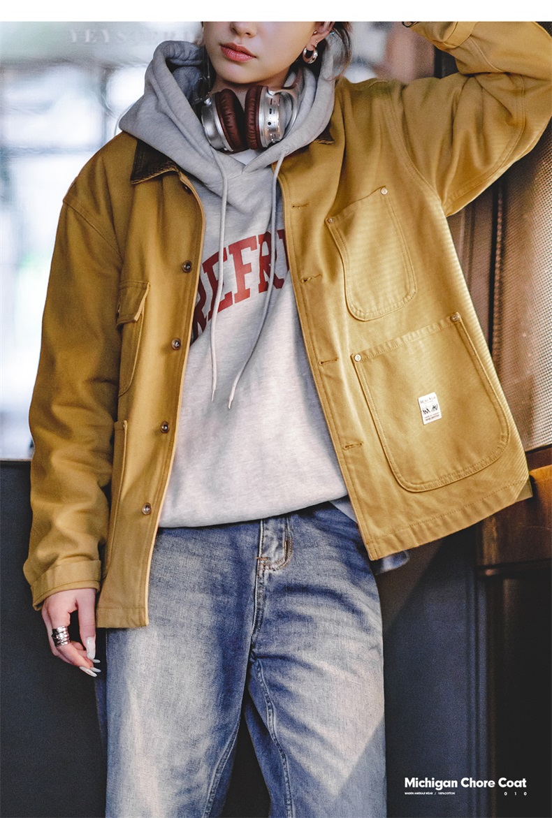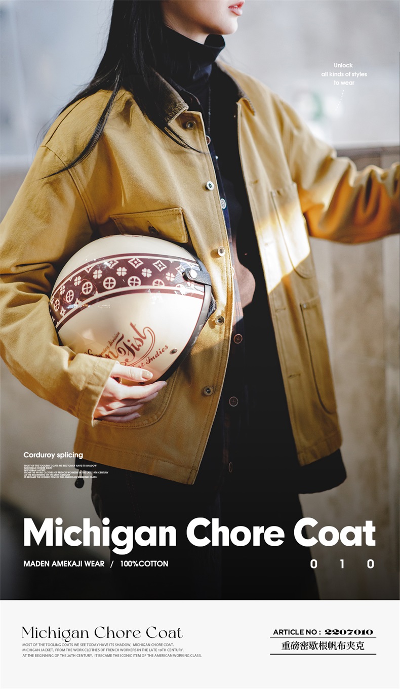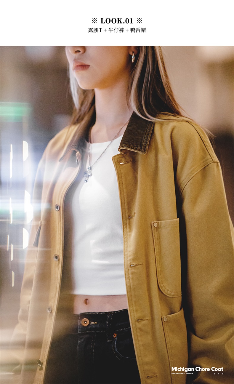 马登美式复古密歇根夹克春秋款纯棉帆布翻领长袖上衣外套女