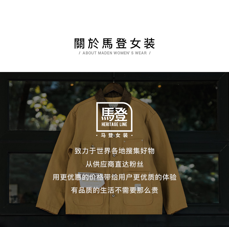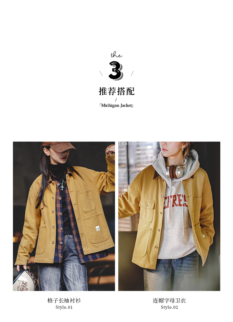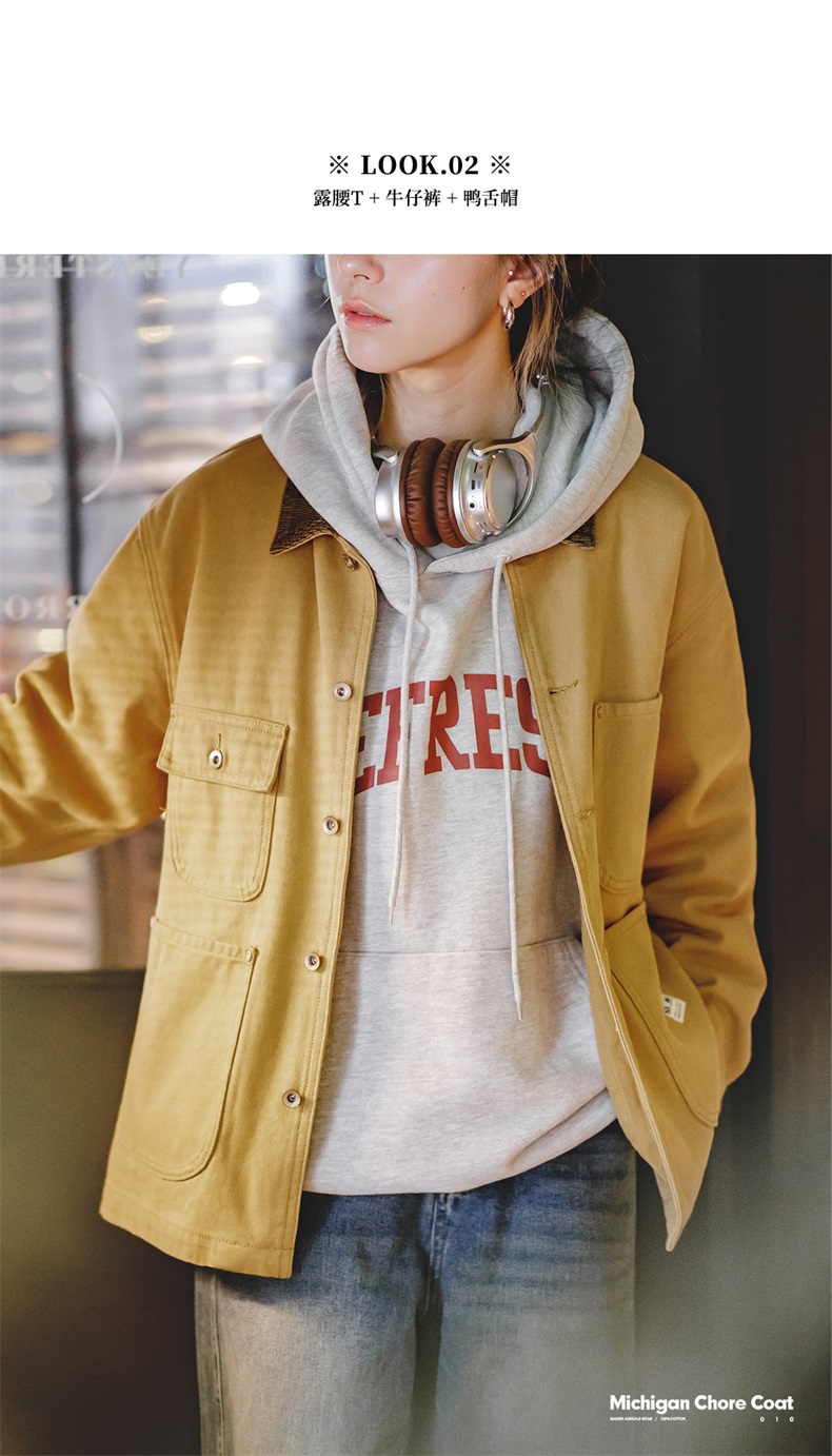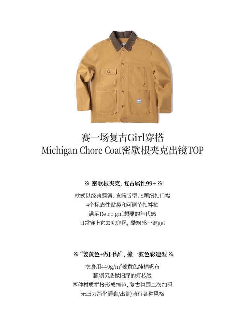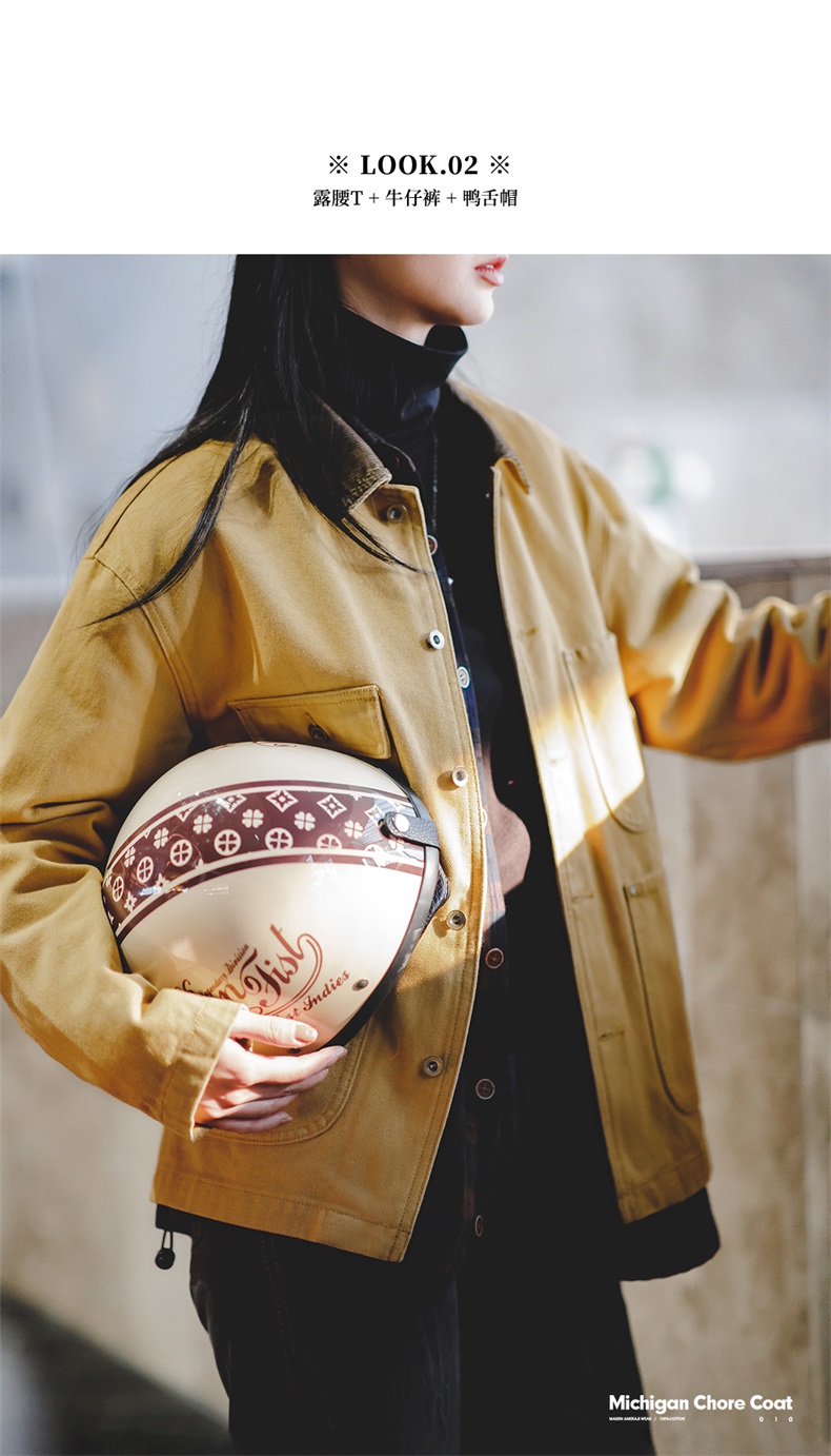 马登美式复古密歇根夹克春秋款纯棉帆布翻领长袖上衣外套女