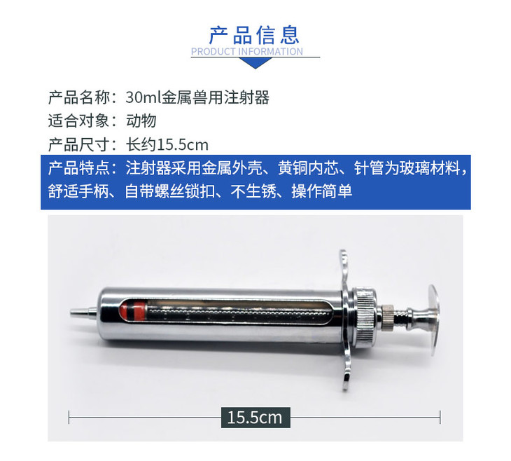 10ml-50ml金属注射器 铜头注射器 琉璃钢注射器 多规格可选