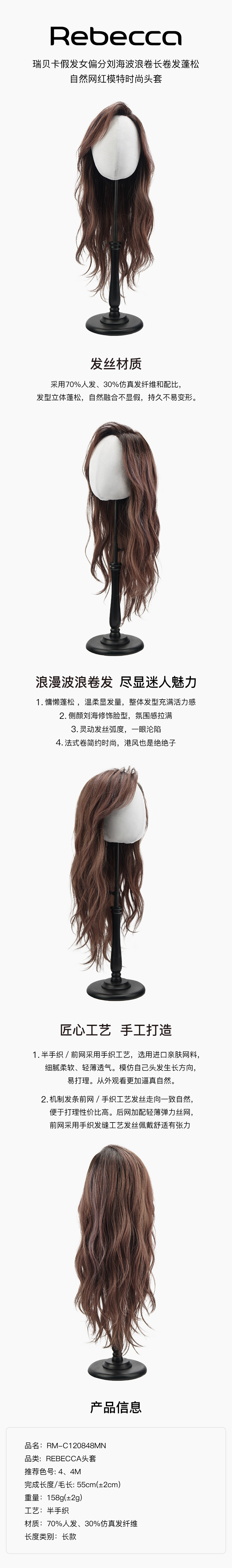 Rebecca瑞贝卡假发女偏分刘海波浪卷长卷发蓬松自然网红模特时尚头套