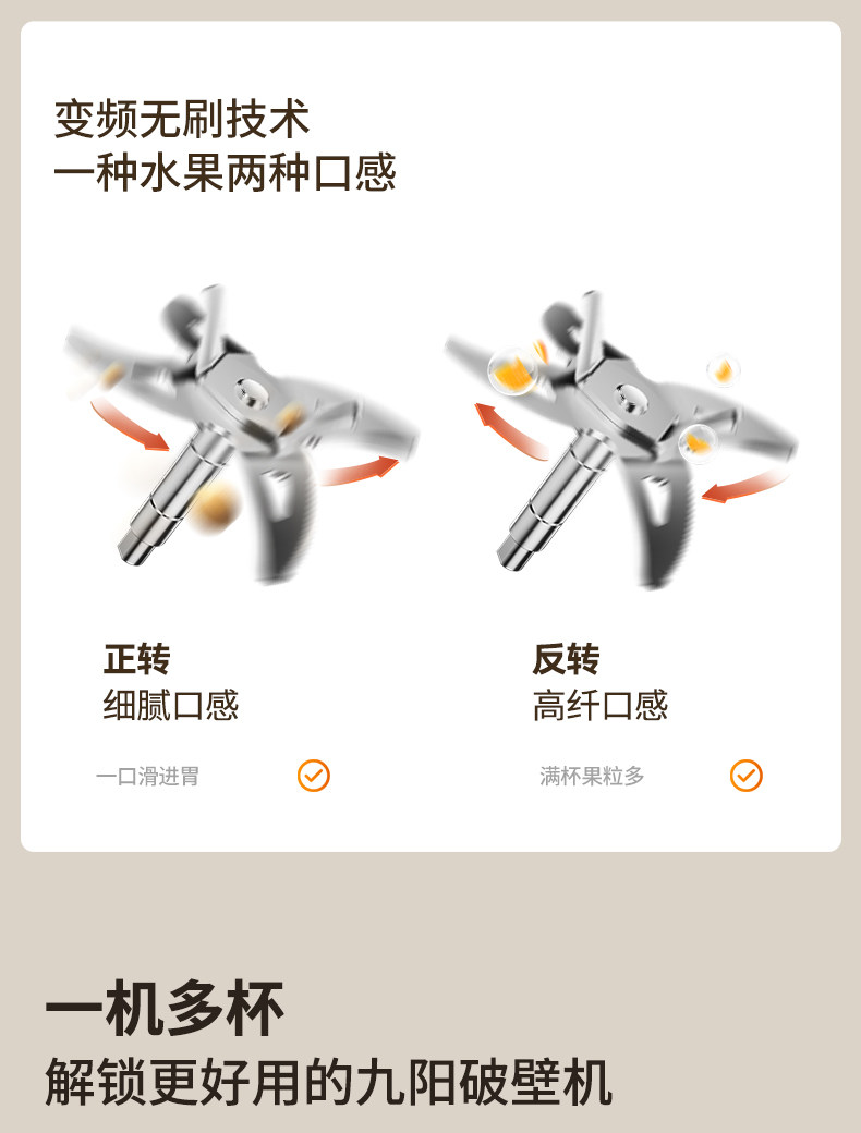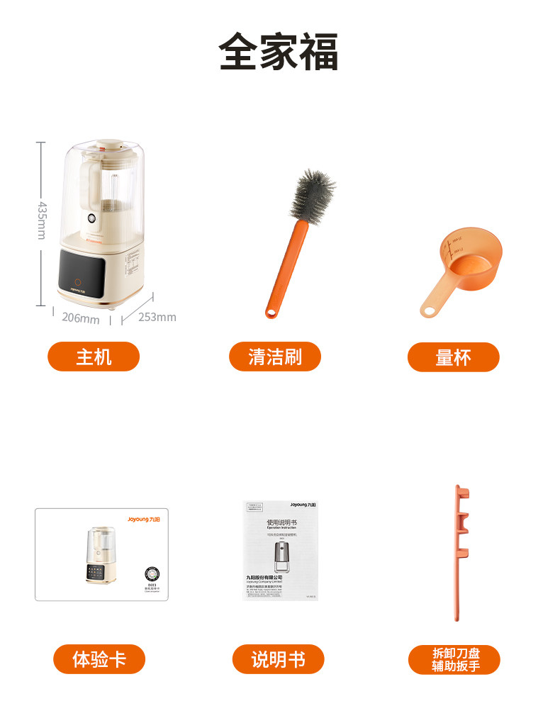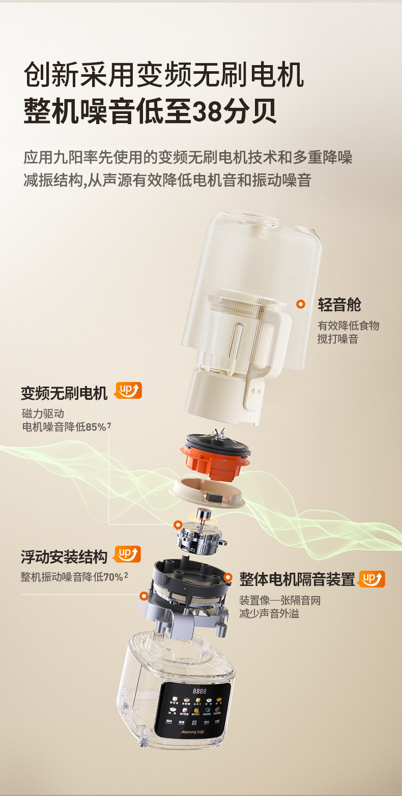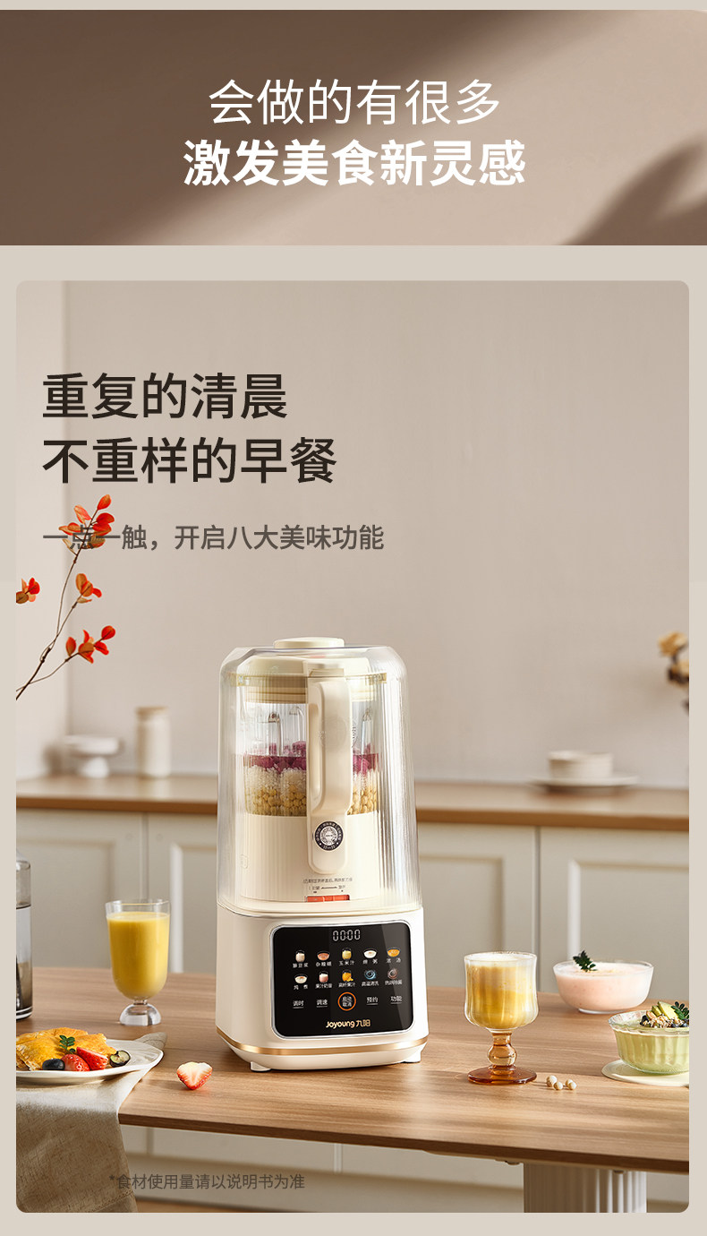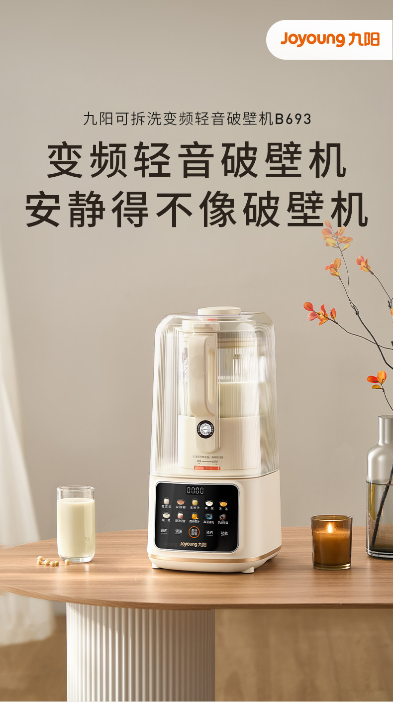 九阳变频轻音破壁机含钛刀盘可拆洗家用多功能料理机榨汁辅食豆浆