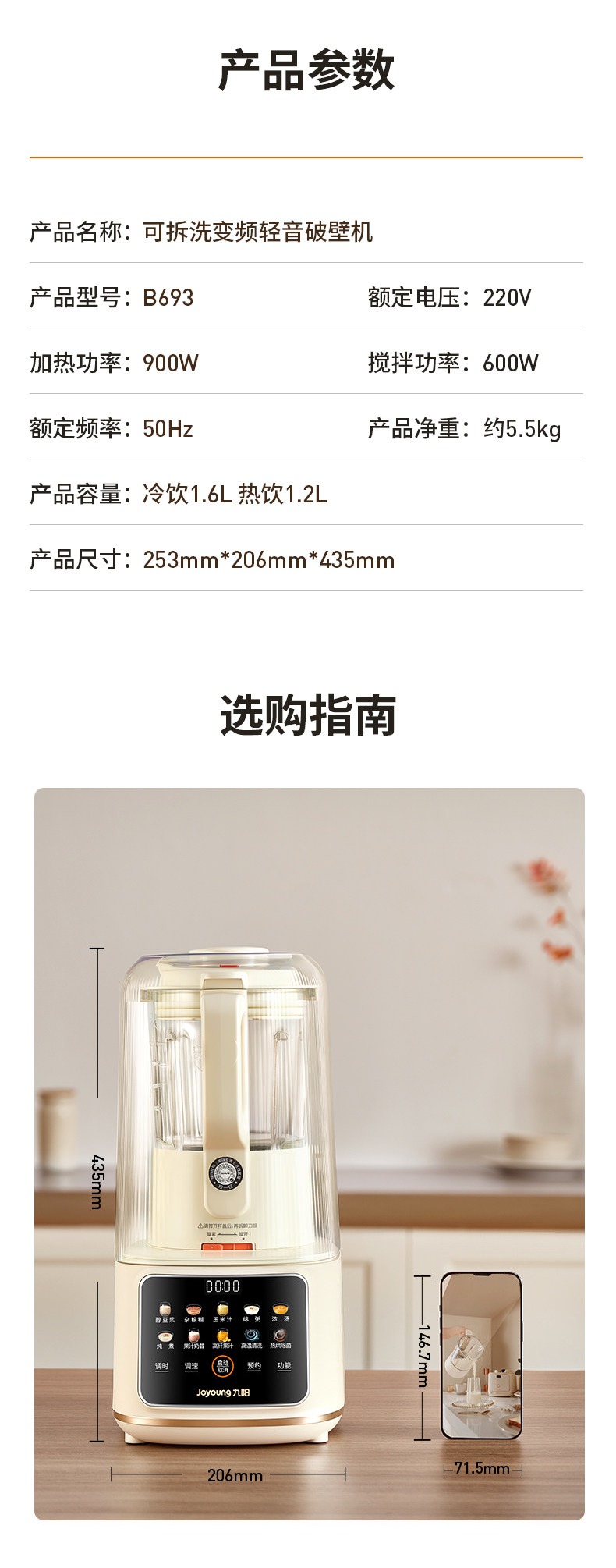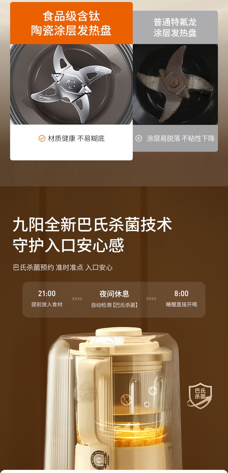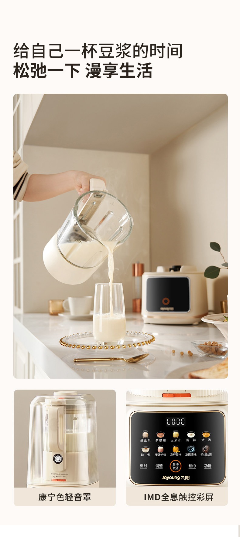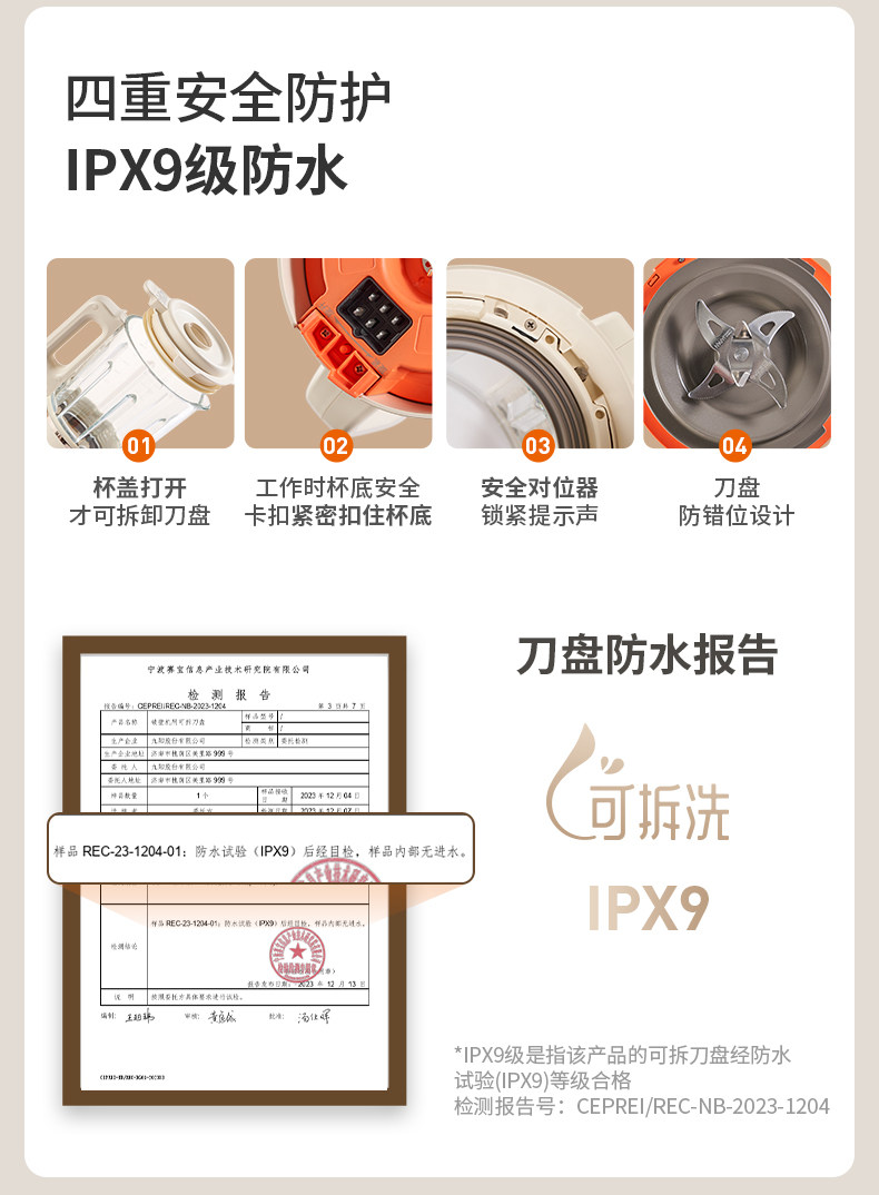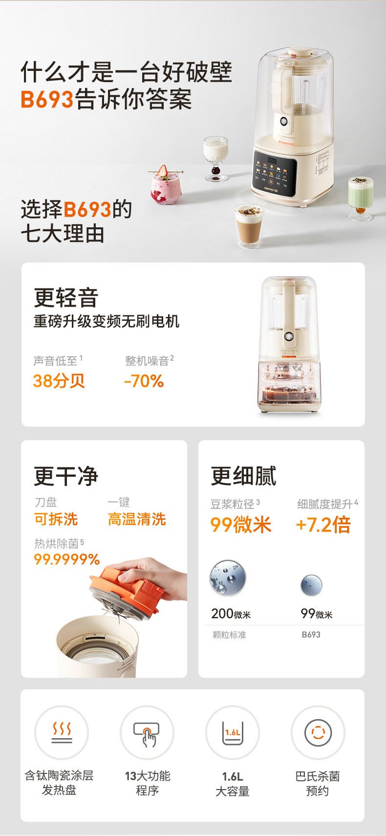 九阳变频轻音破壁机含钛刀盘可拆洗家用多功能料理机榨汁辅食豆浆