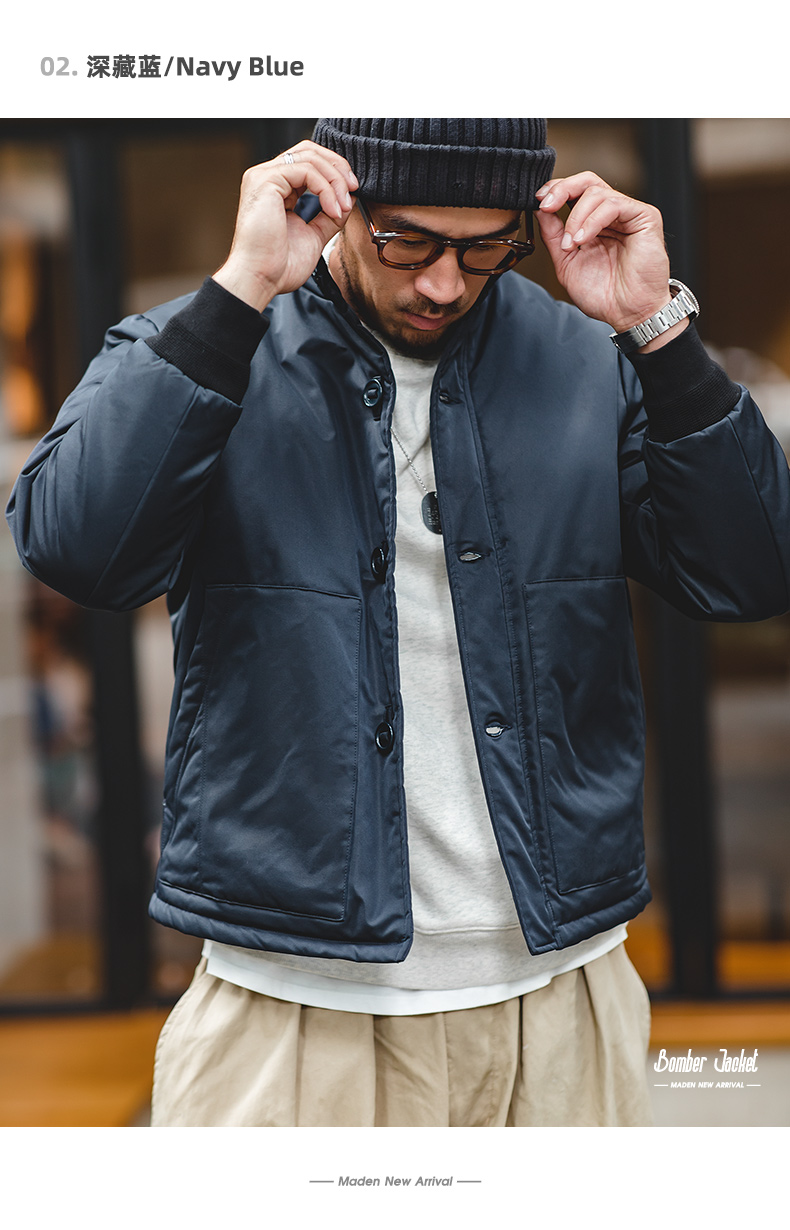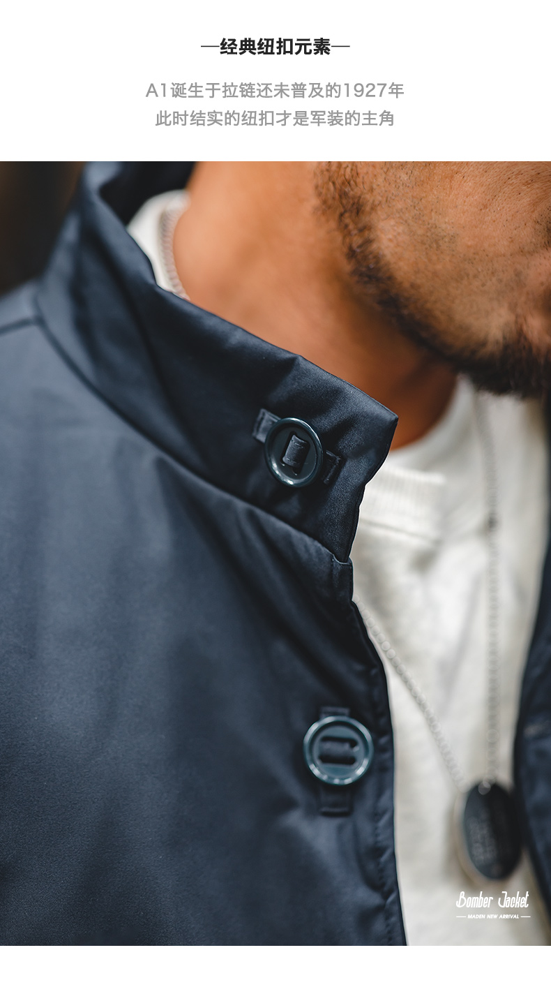 工装优选 日系复古立领加厚A1飞行员夹克空军版棉衣单排扣外套男冬