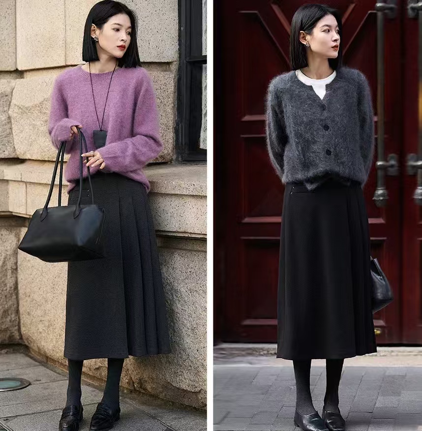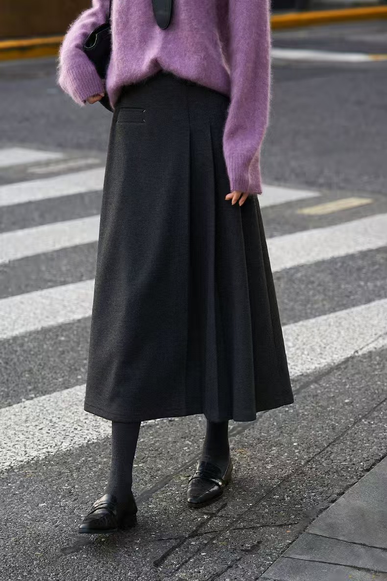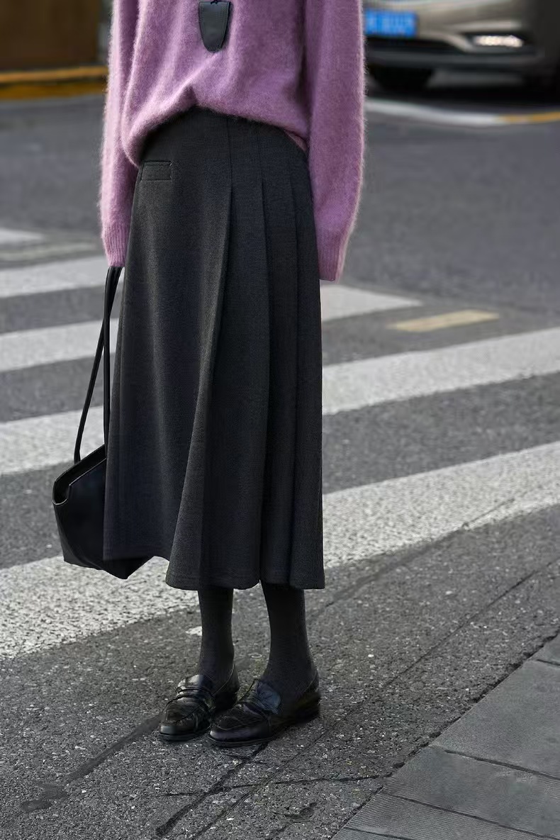 谁懂这条毛呢百褶裙的含金量,秋冬miu系风拿捏,巨百搭显瘦❗