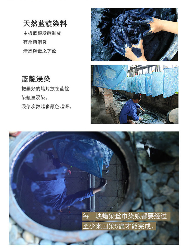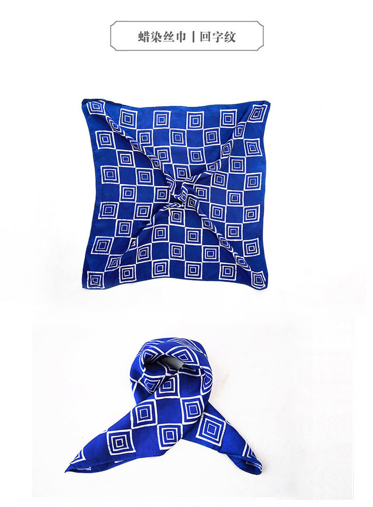 【传承千年 苗族蜡染】 天然草木染色真丝方巾/长丝巾 自然清香,每个图案 都是失传故事