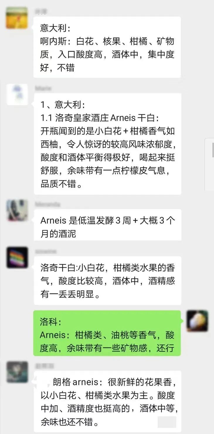 此酒呈浅柠檬黄色,带有清新的小白花、柑橘类水果、梨、和矿物质香气。入口酸度中高,酒体中,集中度不错,余味带有一些蜂蜡等酒泥的气息。以下是当时试酒时大家给的反馈: