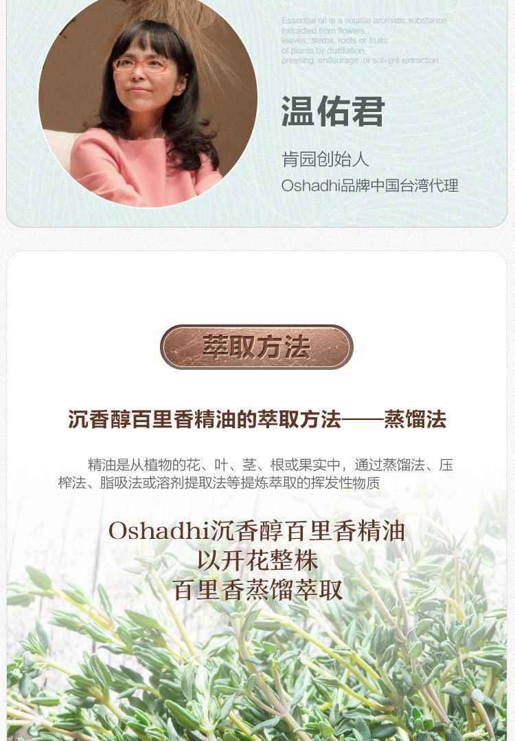 德国O家有机沉香醇百里香单方精油 稀释做面部精华油 按摩油