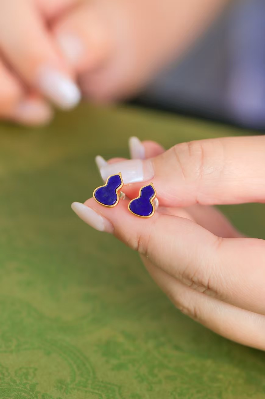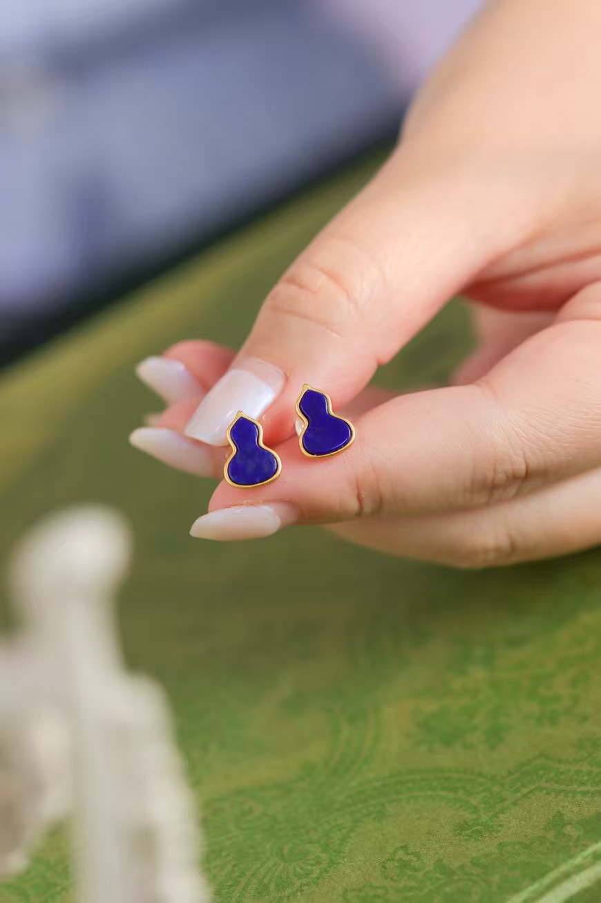 青金级 天然青金石镶嵌,复古小巧精致,纯银镀金镶嵌,保色持久。