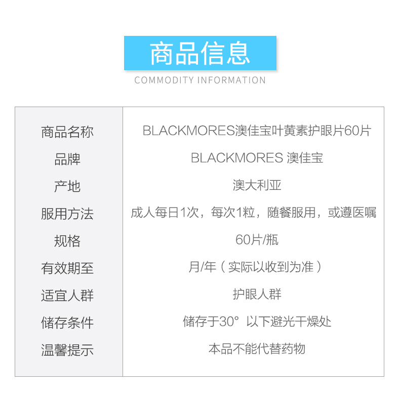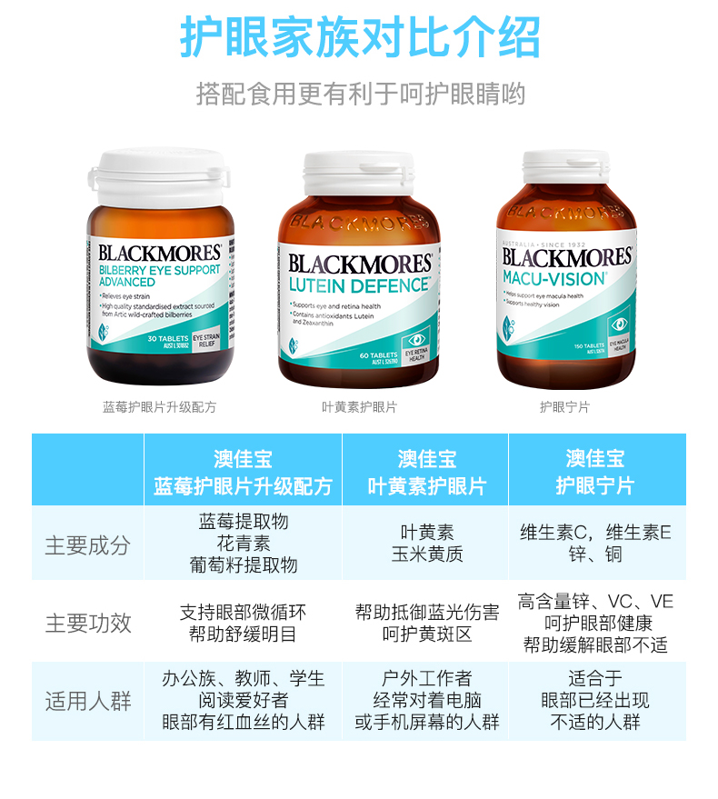 BLACKMORES澳佳宝叶黄素护眼片60粒 过滤蓝光