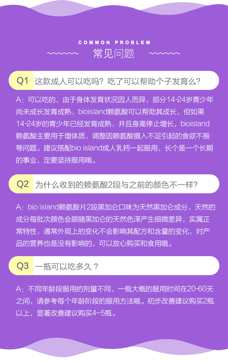 bio island澳洲进口儿童黄金赖氨酸2段 青少年成长发育