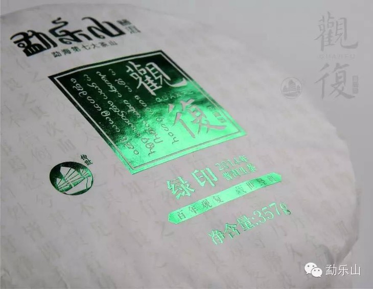 包装主色是纯净的绿,硕大的“绿印”二字清晰可见,让人联想起勐海茶厂50年代的“绿印圆茶”,早期的“绿印”无论在陈香、樟香、滋味、茶气方面都是一流的。