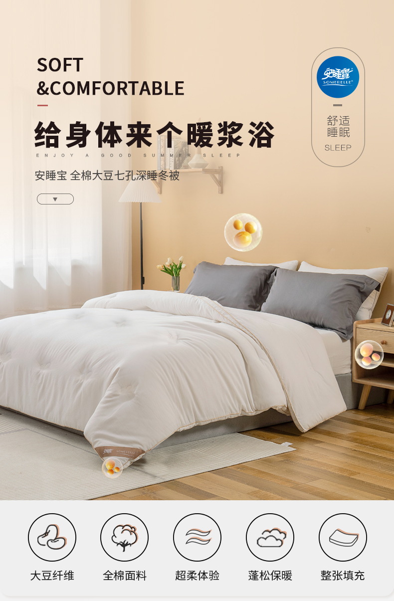 【云粉节】【满300减30】【买一赠一】10楼 安睡宝 全棉A类大豆七孔深睡冬被(赠:星月枕一对)吊牌价1099-1399元 活动价399-599元