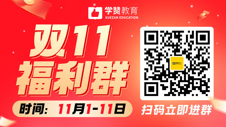 活动为:双十一宠粉特惠限时活动,名额有限,中奖者可免费读全程班+教材,中奖者务必按系统提示联系学赞老师进行兑奖,兑奖时间截止:2025年11月11日24:00,过期不候!奖品仅限本人使用,不可修改信息!【注:如中奖者已购买课程,不支持退差价,可转赠!】介意者勿参与!!如有疑问可咨询学赞老师!