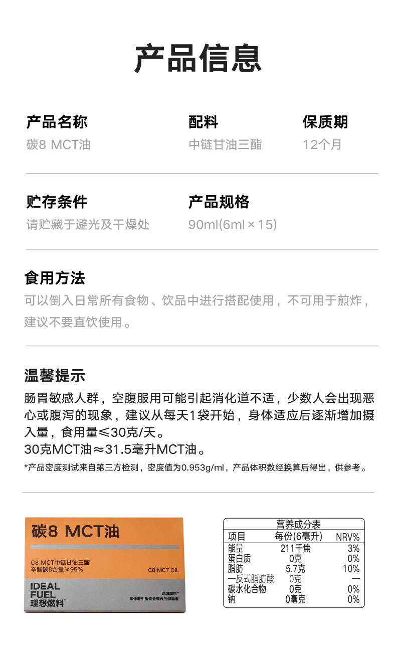 理想燃料 | 碳8MCT油 6ml*15条