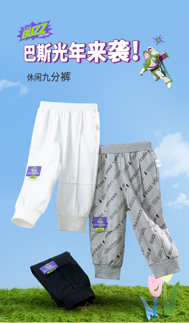 【商场同款】迪士尼童装 男童春季新款休闲裤中小童满印九分裤运动束脚裤