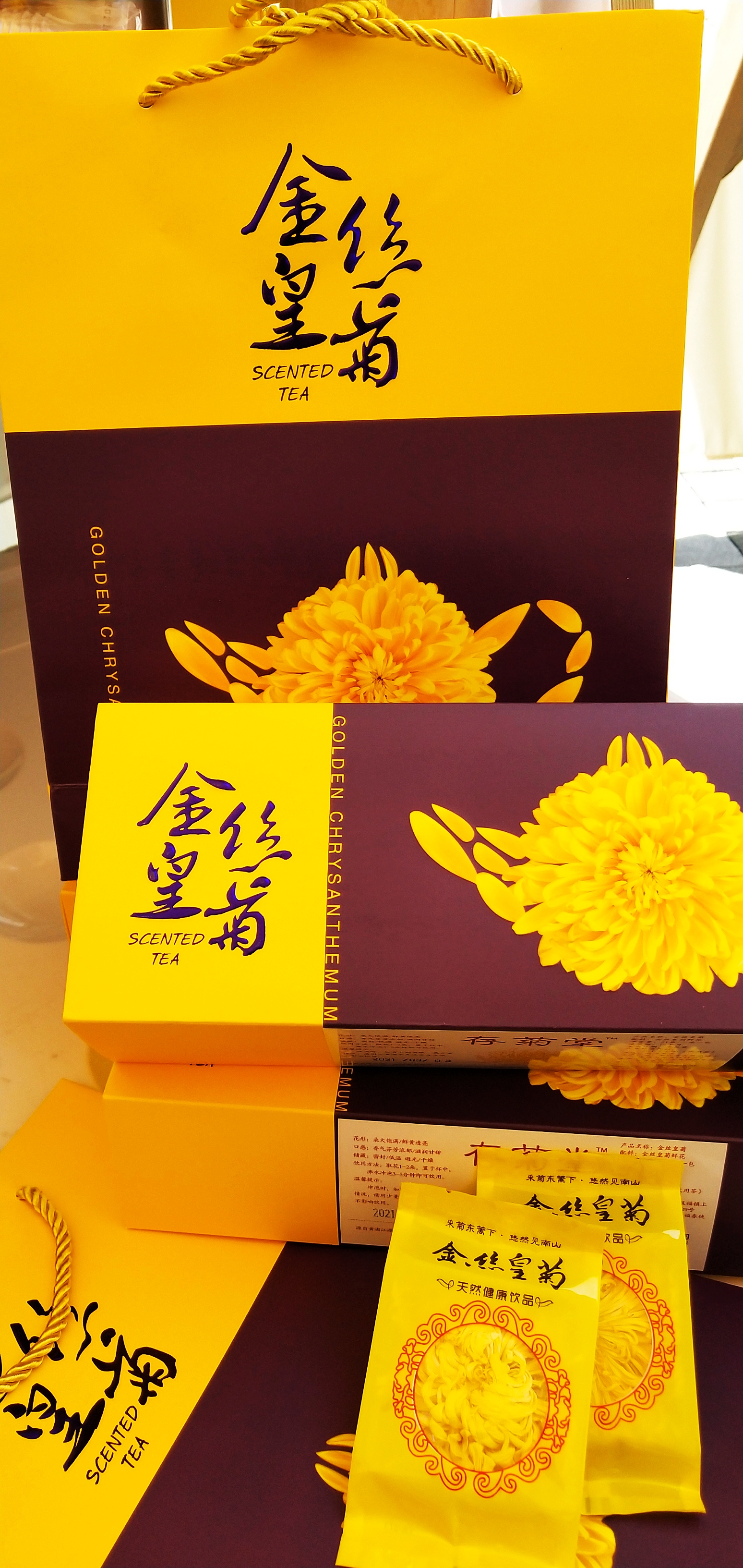 金丝皇菊源于江西修水,今年上半年在黄浦江源的大畈梯田品种引进种植,由于原生态山区的气候条件,土壤及环境条件非常适合金丝皇菊的种植,在种植过程中不使用化肥和农药,使每一朵菊花都相当水灵饱满,做到零添加,原生态。