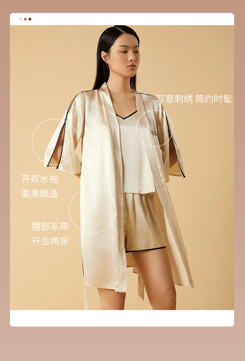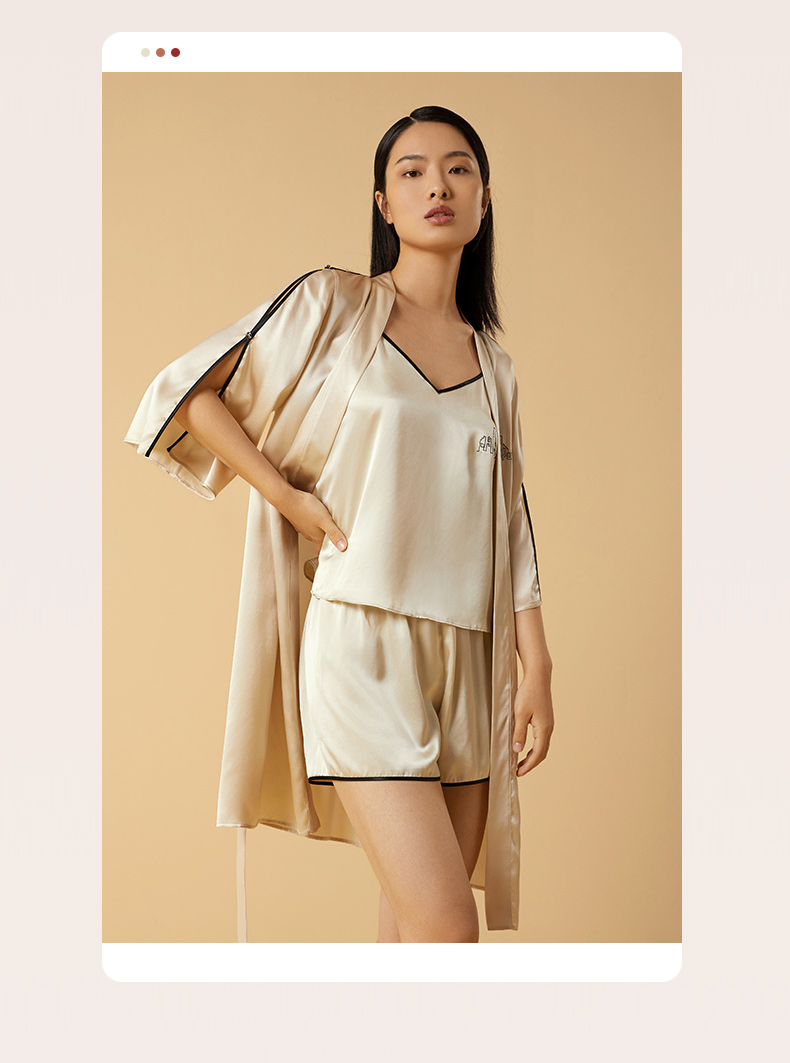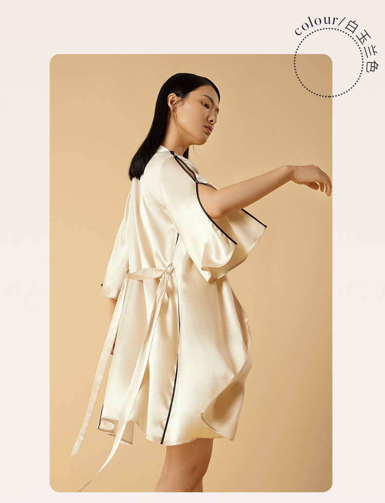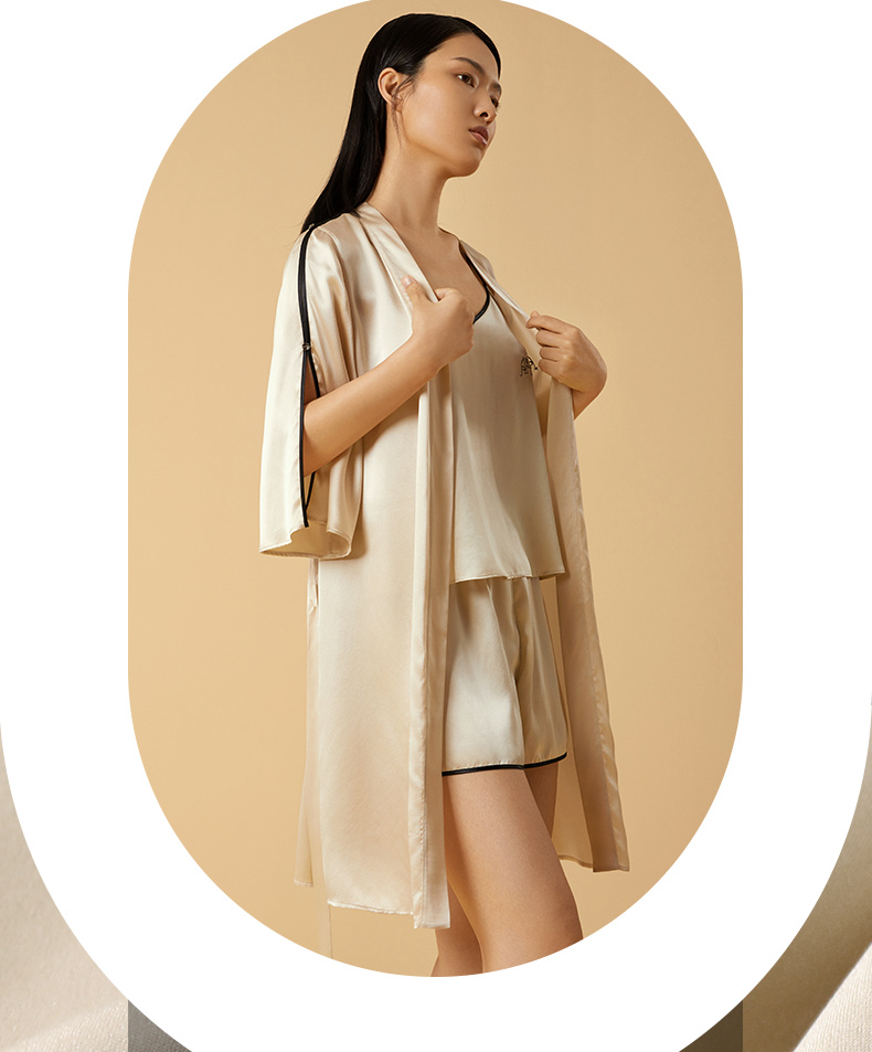 金三塔桑蚕丝弹力缎不易皱的真丝女士弹力缎睡袍家居服新品 YSFCB102