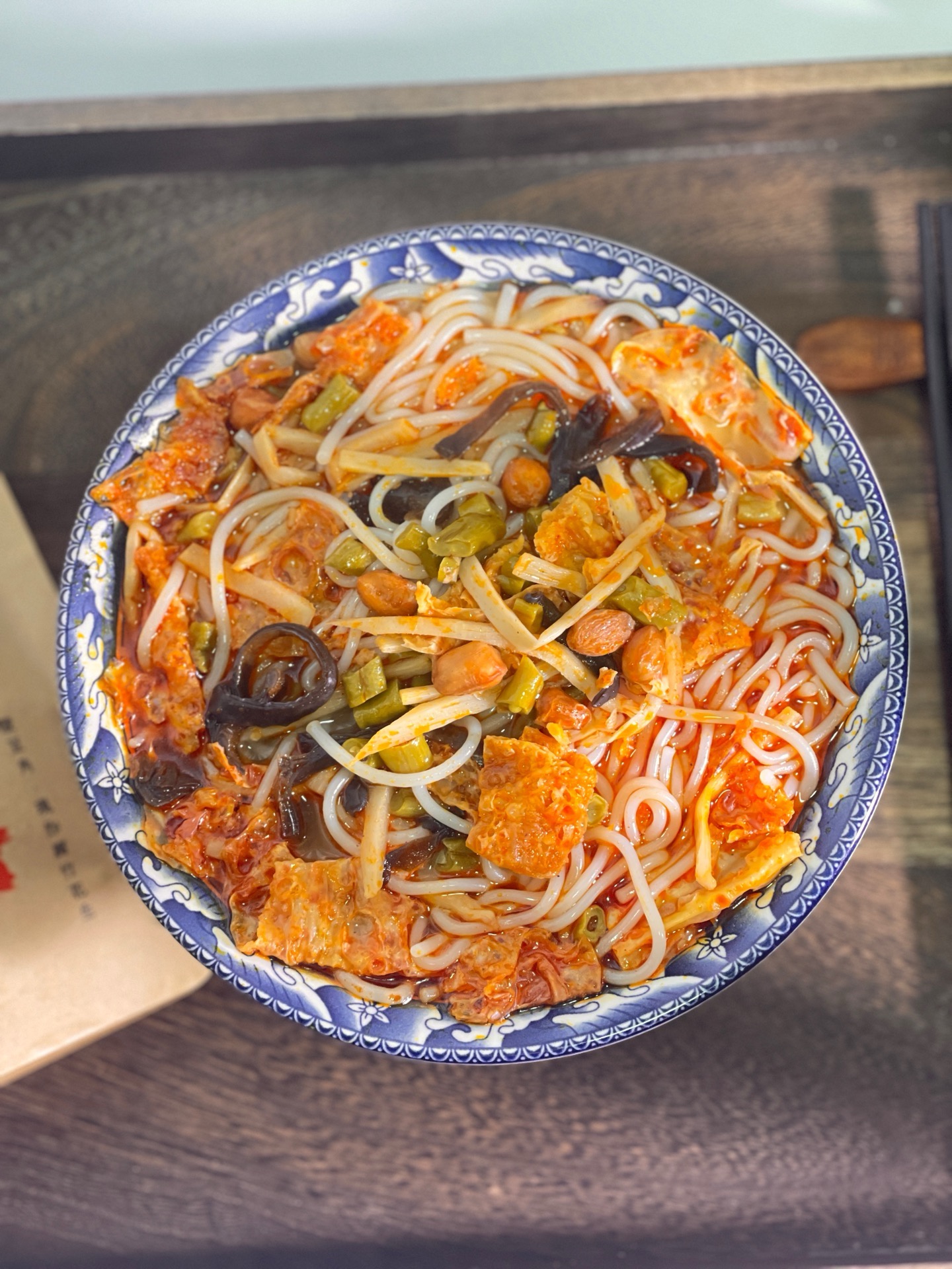 2.人工熬制汤底,酸笋豆角自己泡,腐竹花生自己炸,特别酥脆,不含添加剂,还原—碗新鲜味道