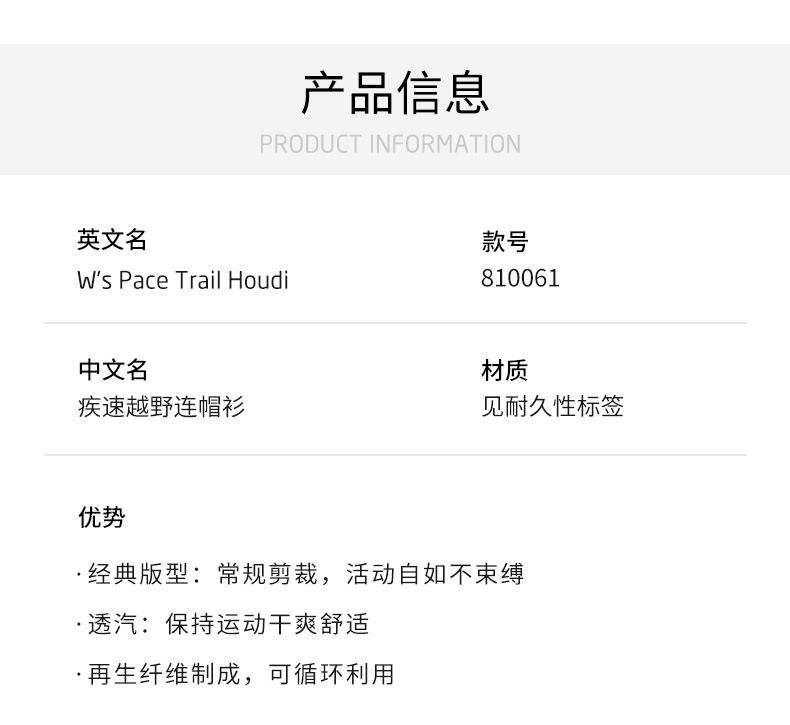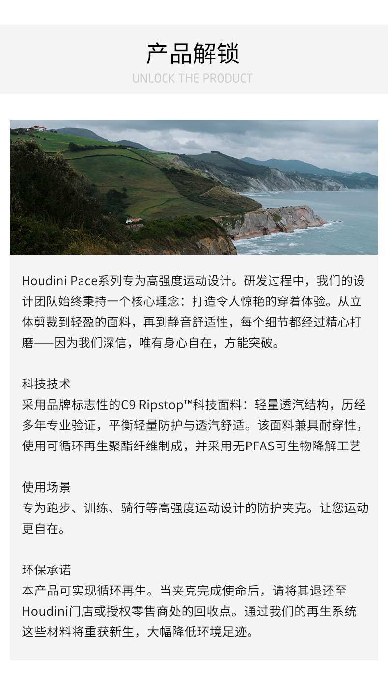 HOUDINI胡丁尼Pace Trail疾速户外26春夏新女连帽跑步轻防风外套 810061