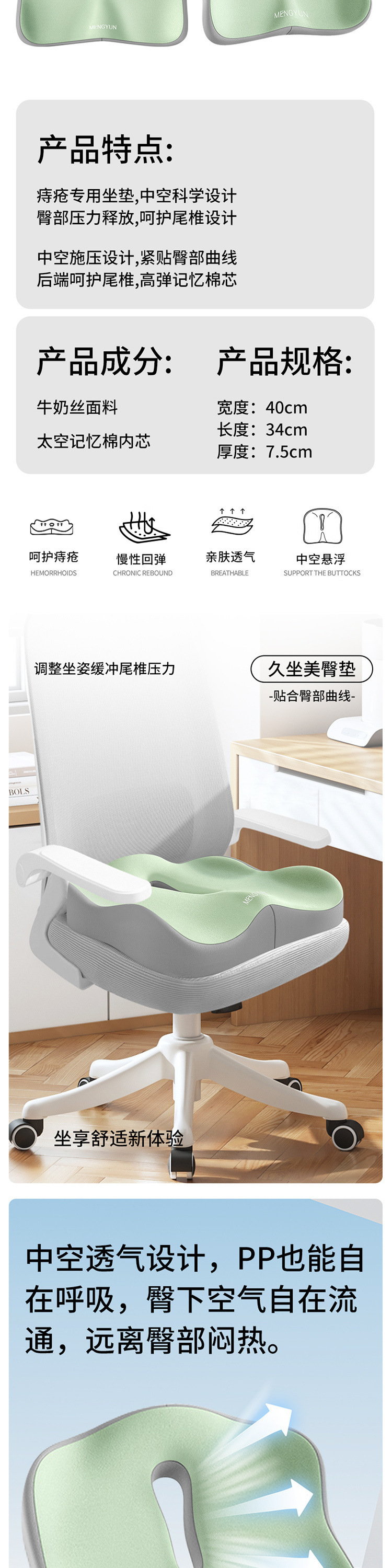 腰靠垫护腰神器办公椅靠垫学生坐垫电竞椅座垫腰部支撑久坐防疲劳