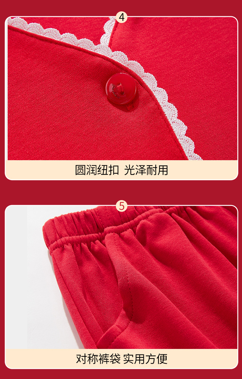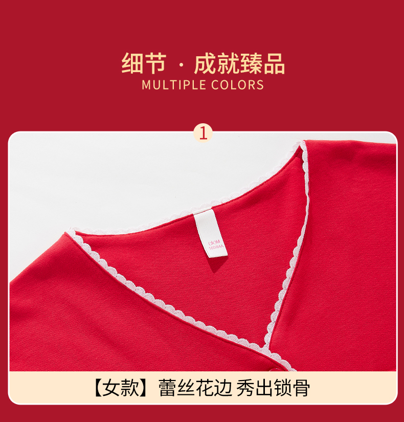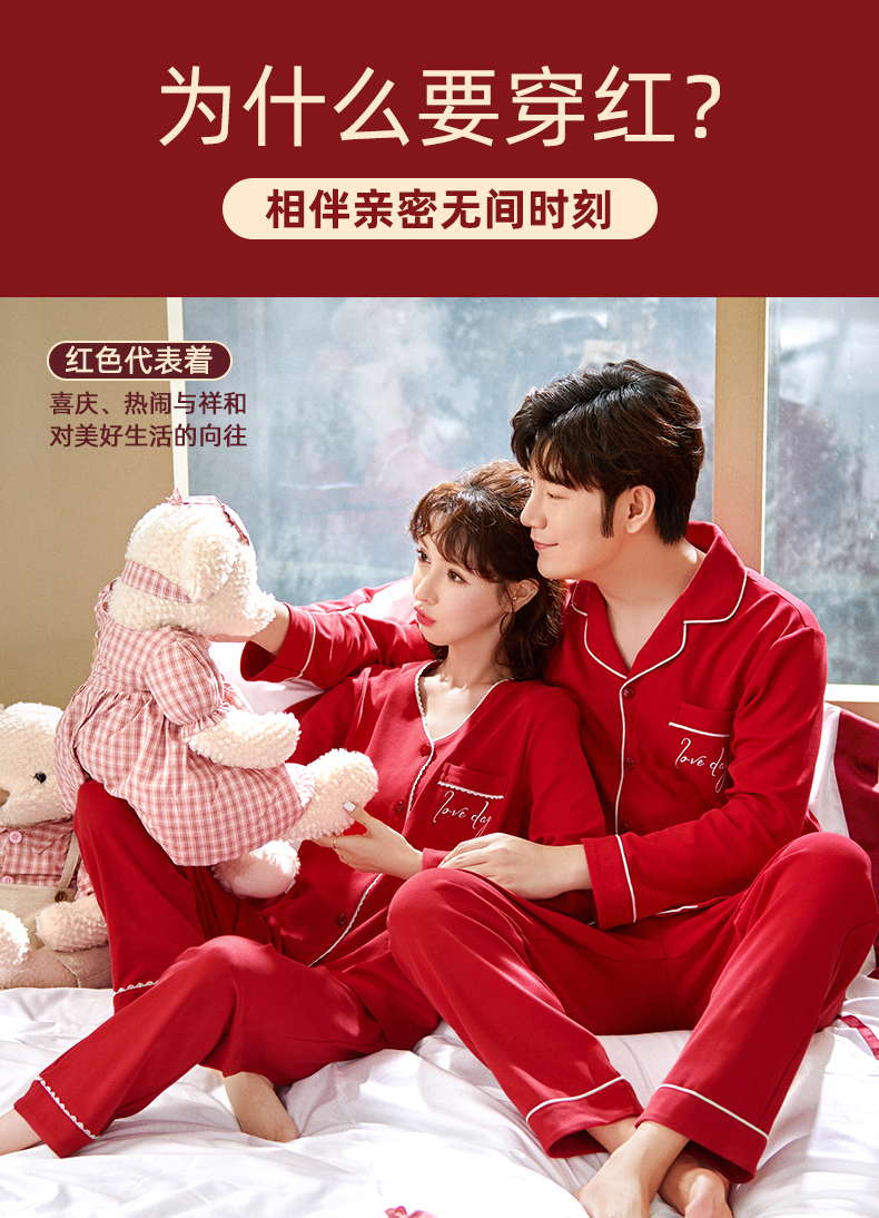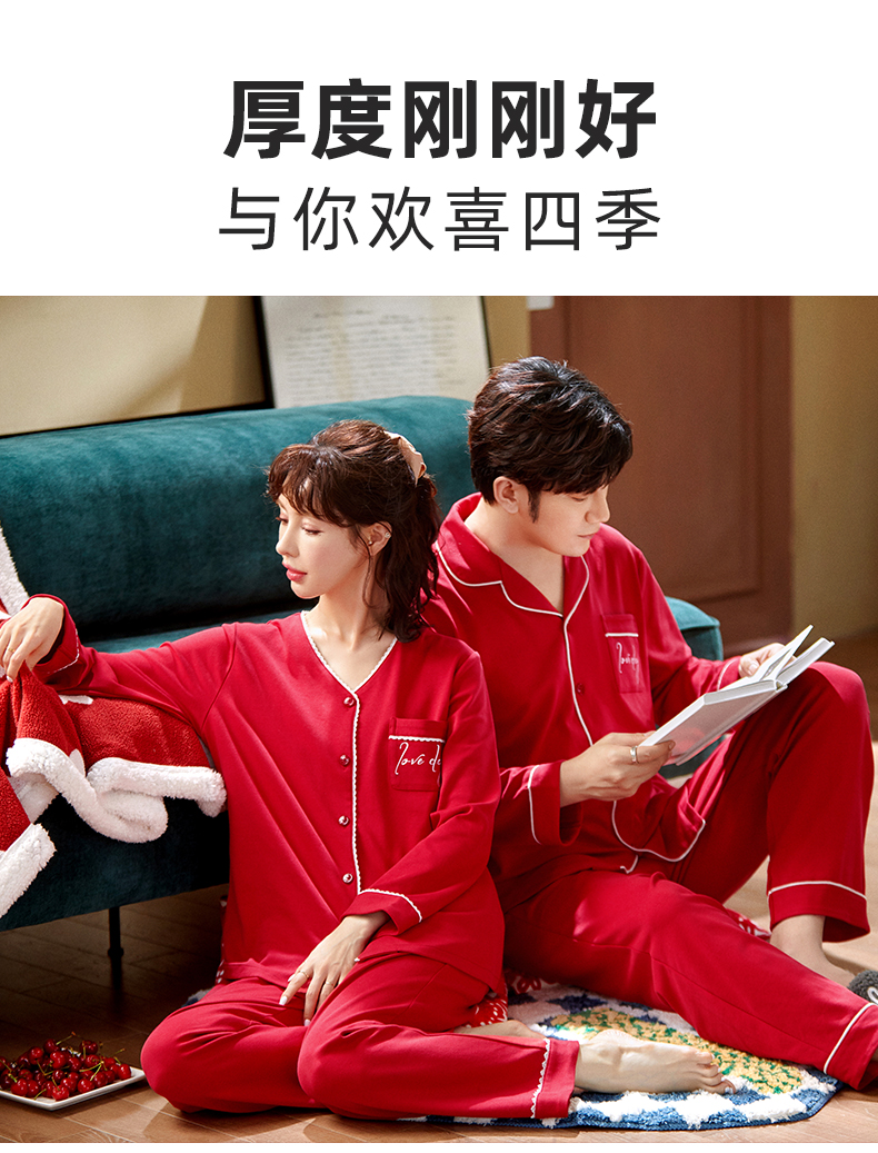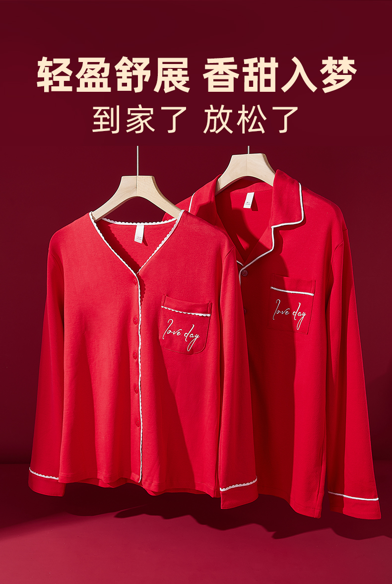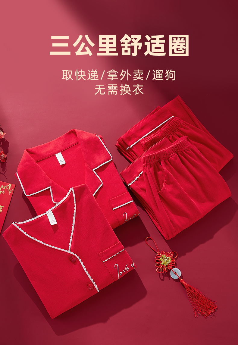 雅黛丽大红色家居服情侣套装本命年长袖长裤结婚新娘全棉睡衣睡裤