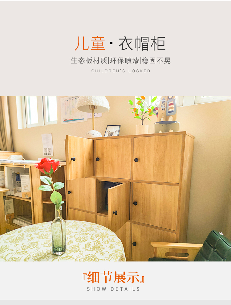 9格儿童衣帽柜收纳柜幼儿园小空间简约带门9格儿童衣帽柜收纳柜