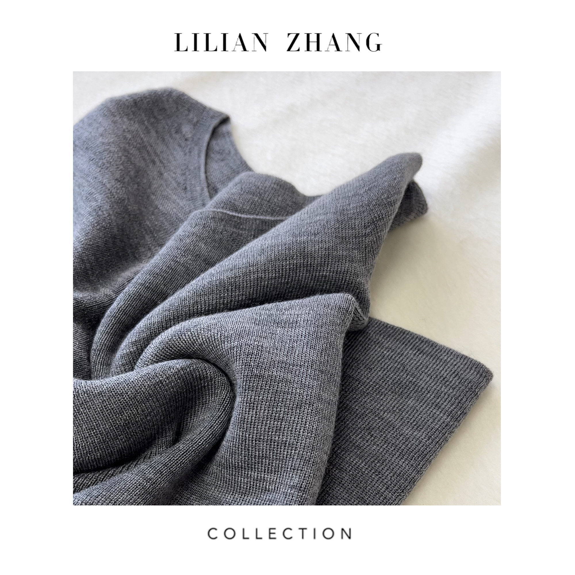 LILIAN ZHANG 秋冬定制扬子纱、一字领中袖羊毛套衫打底衫 2408004