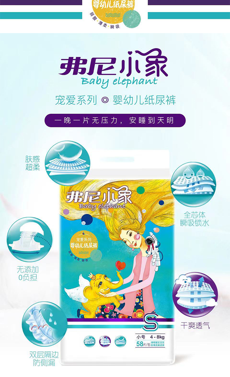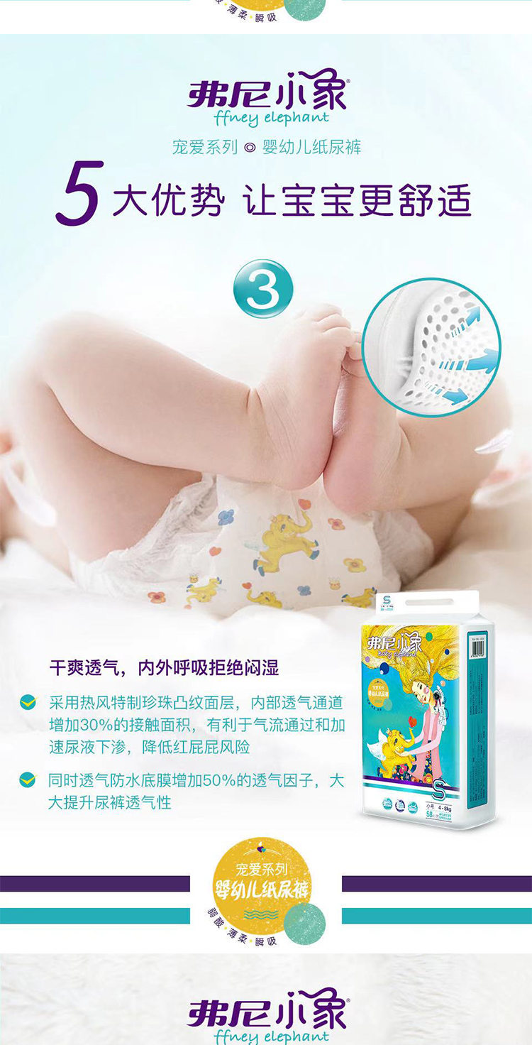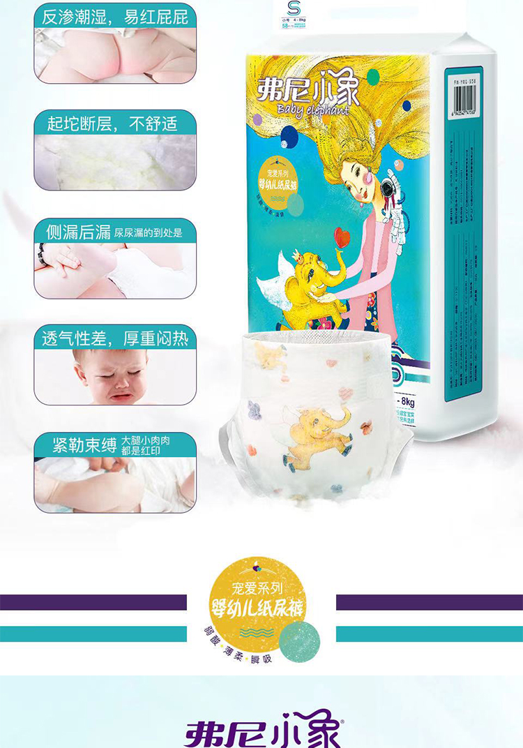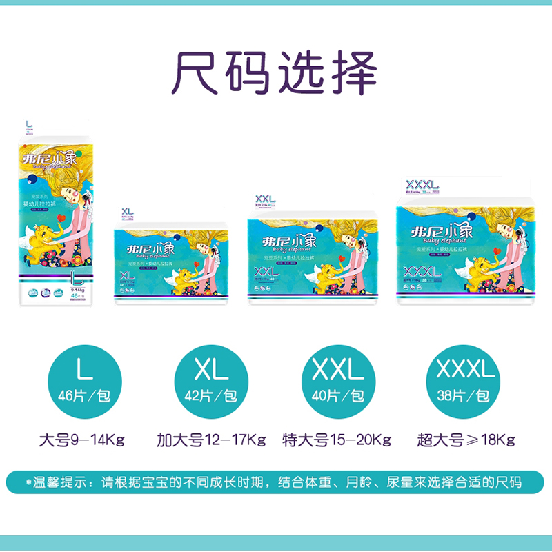 弗尼小象婴儿纸尿裤超薄干爽拉拉裤*3包