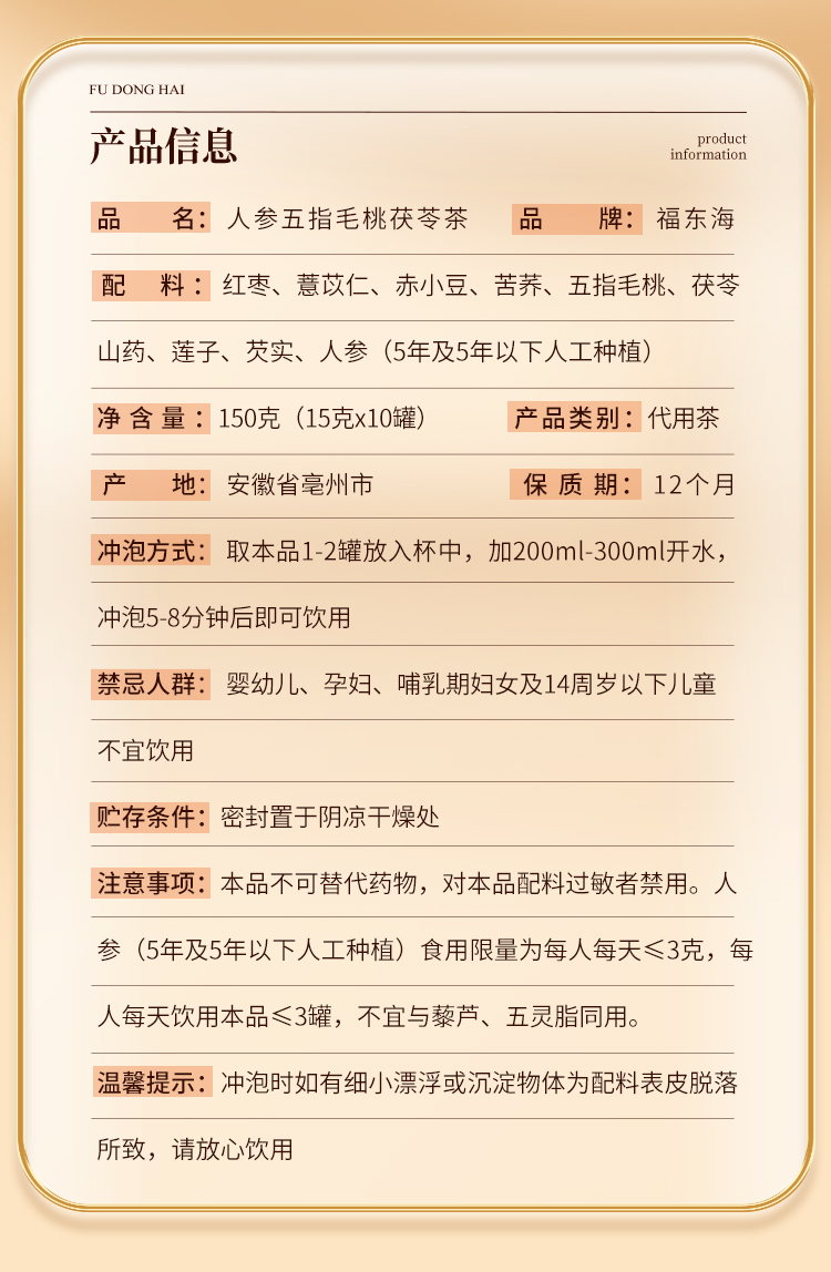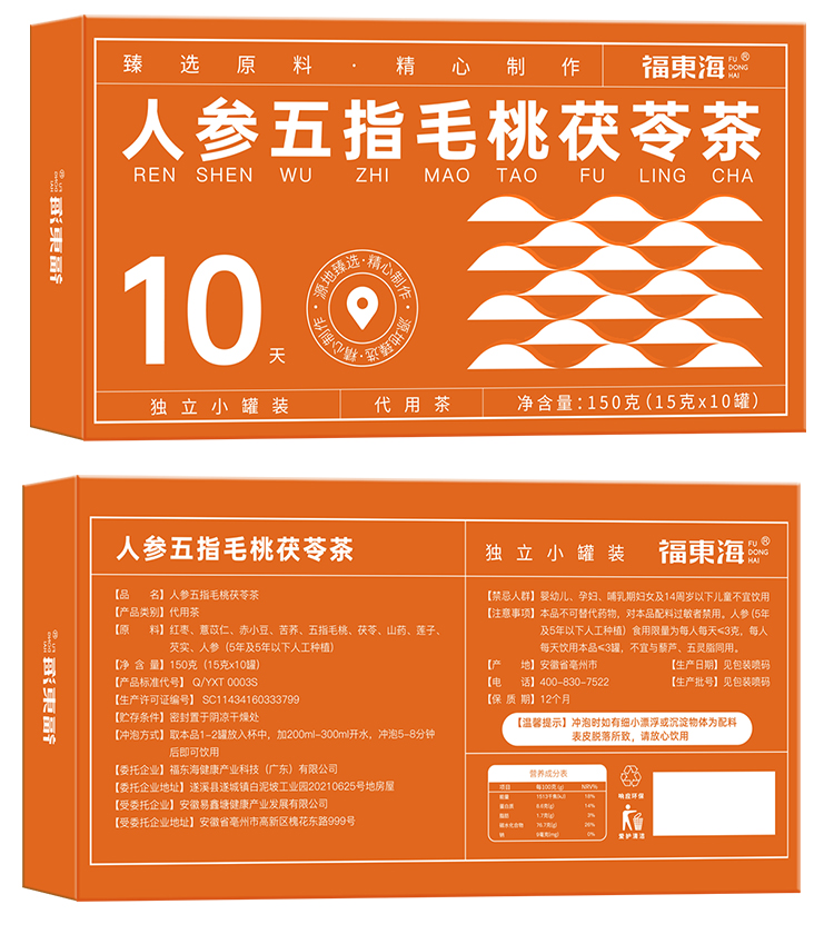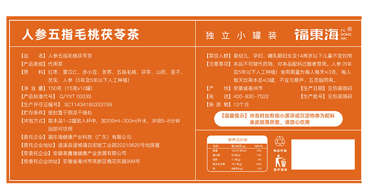 福东海 人参五指毛桃茯苓茶150克 赤小豆红枣茯苓薏米茶可搭祛身湿茶
