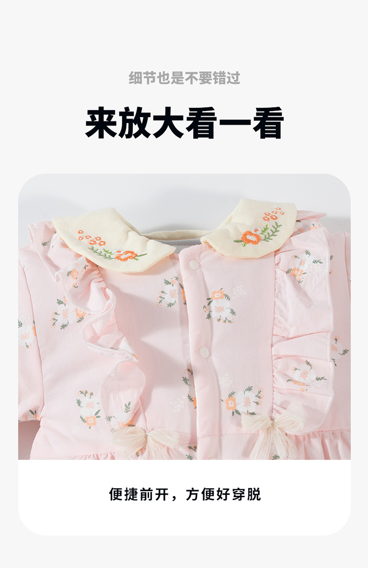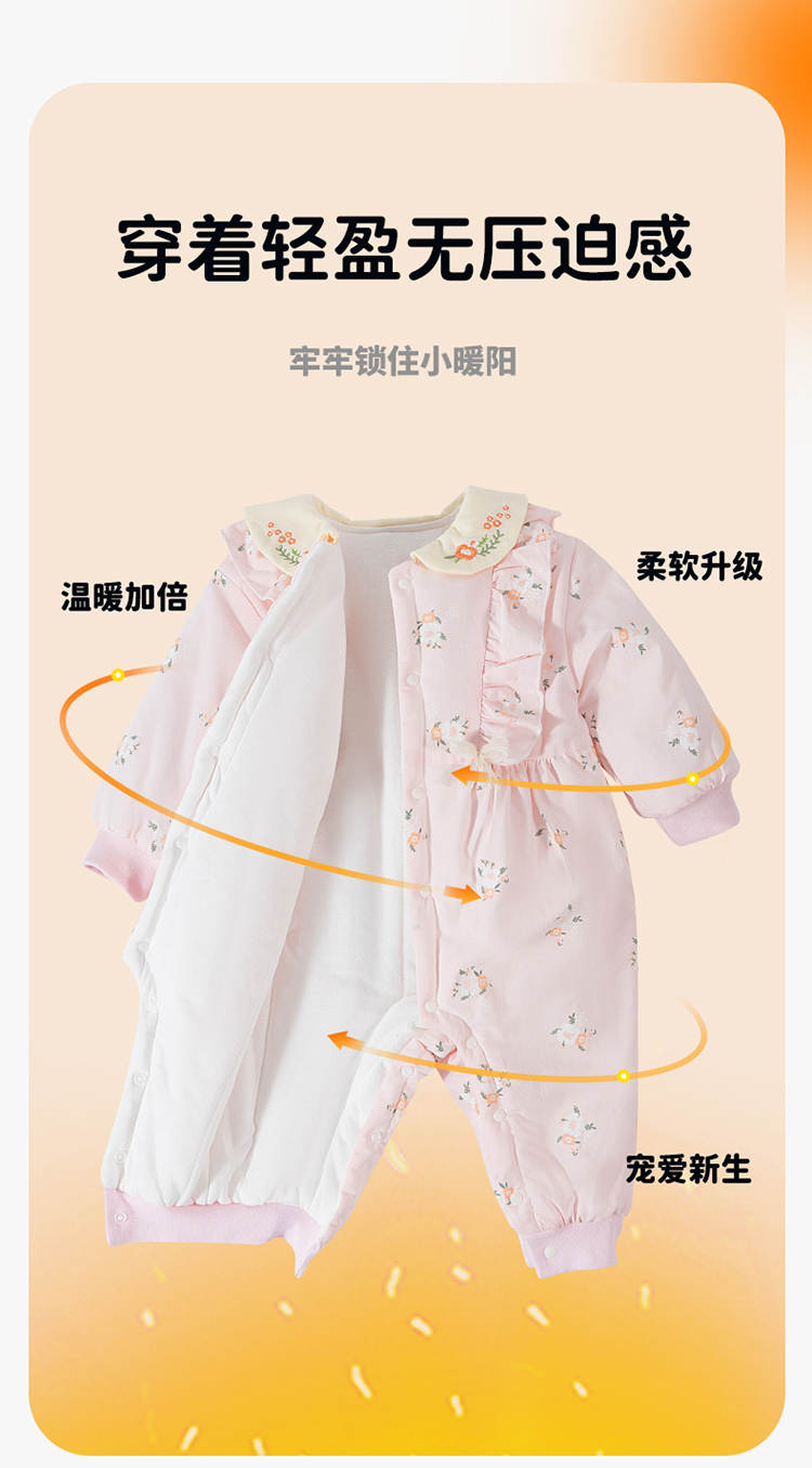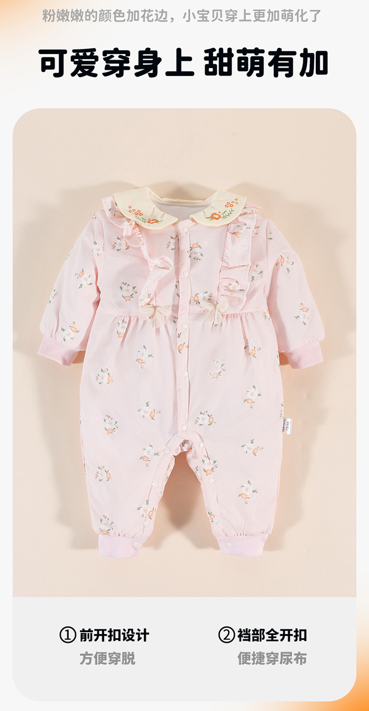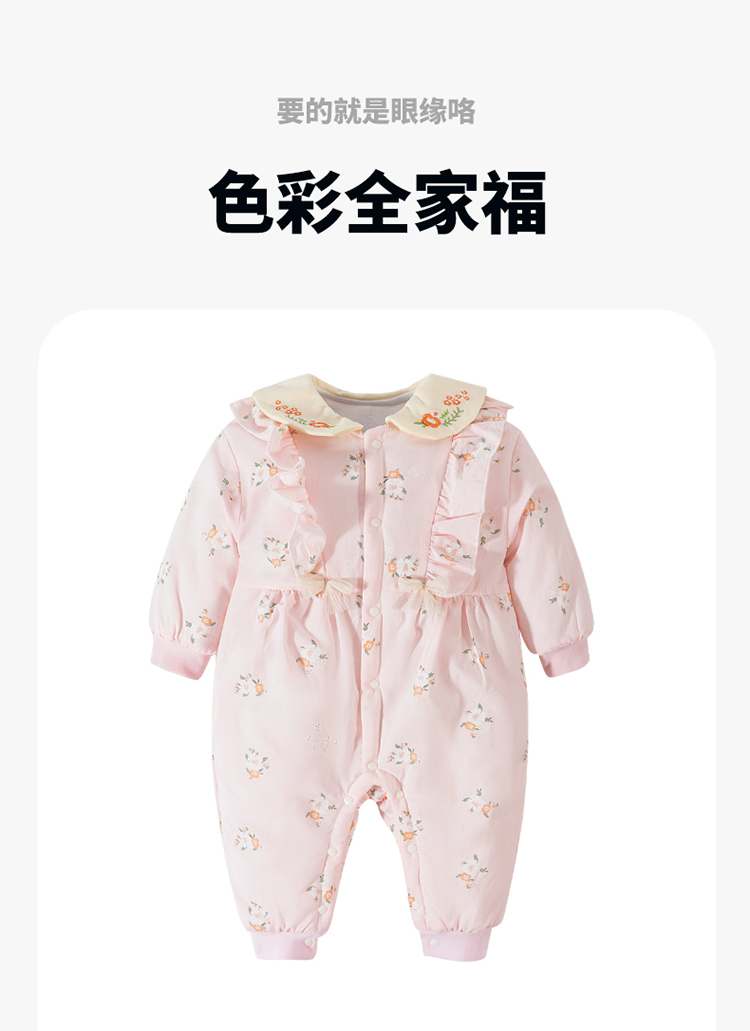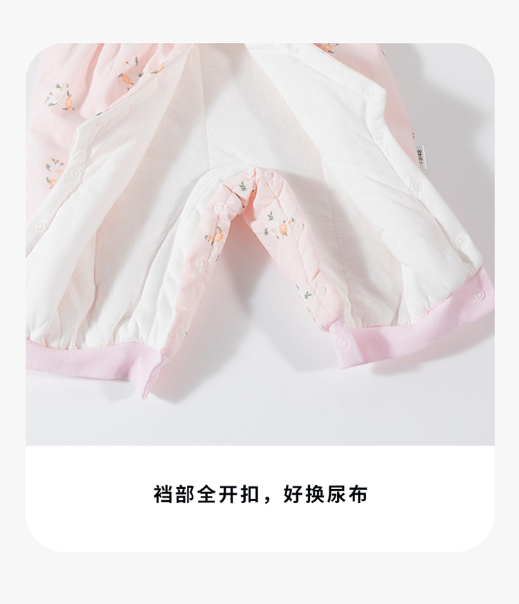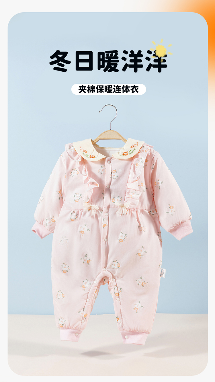 贝贝怡童装秋冬新款婴幼儿夹棉前开连体衣保暖厚实宝宝外衣冬装ZB4CL002