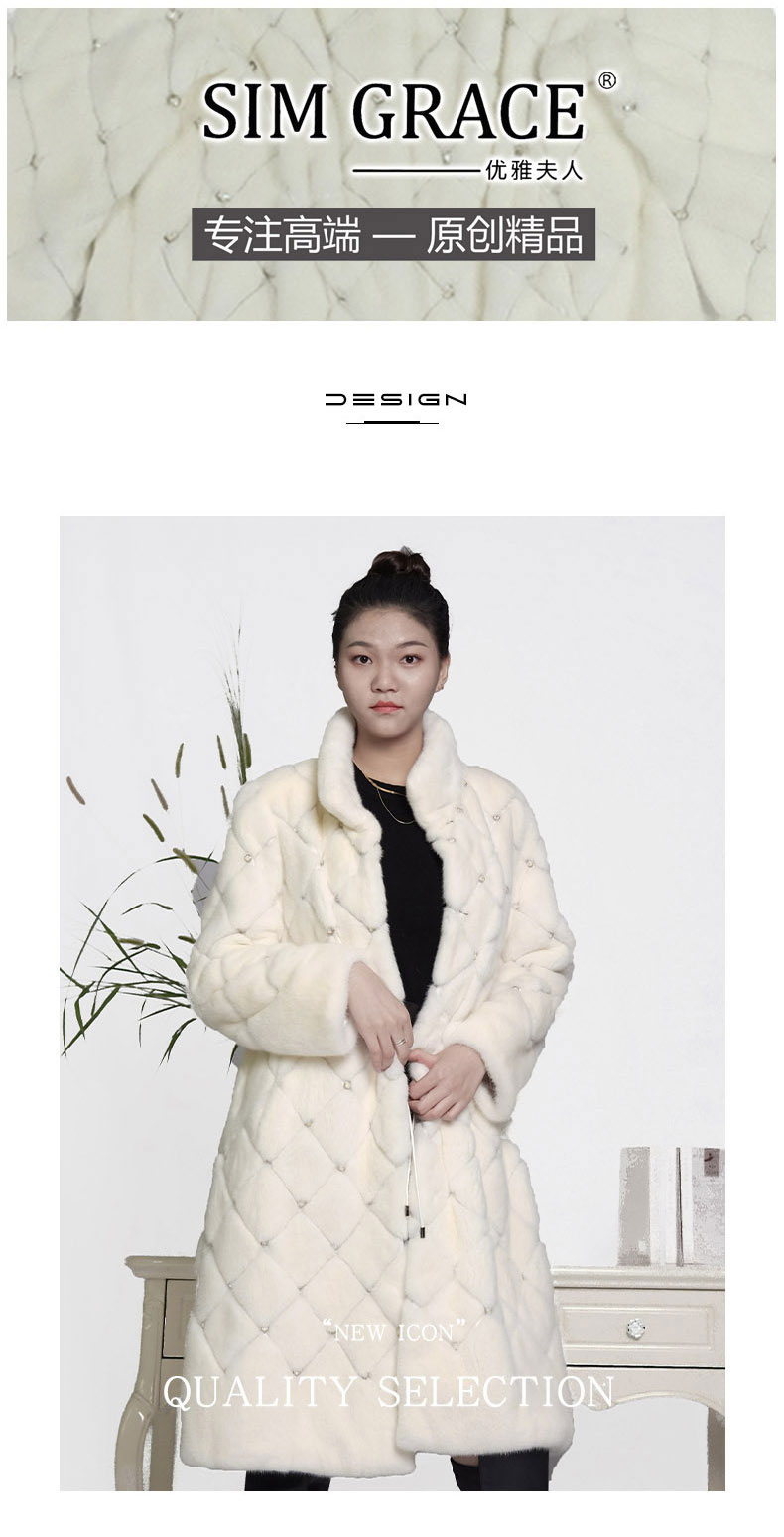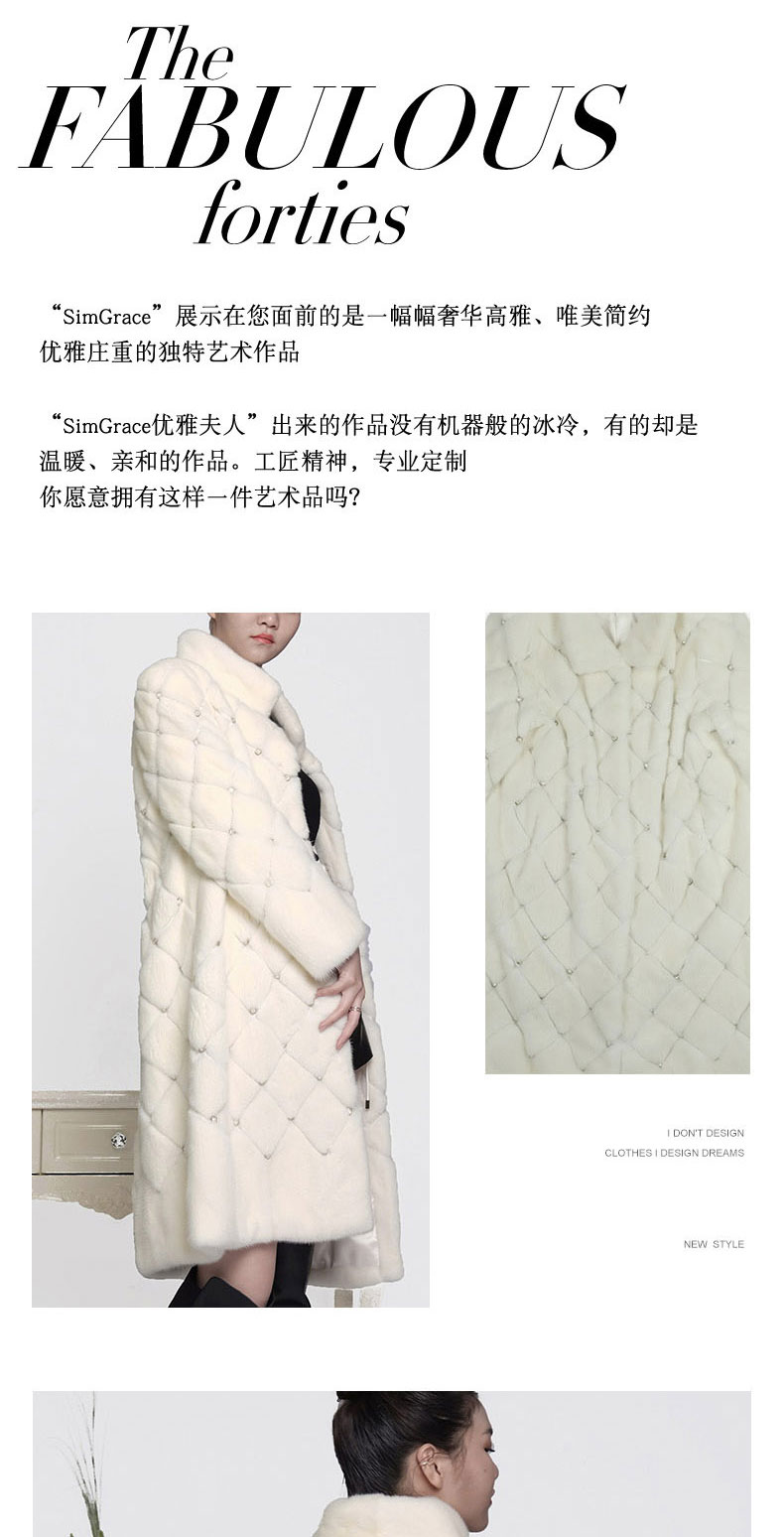 SIM GRACE 优雅夫人 进口白色水貂镶施华洛世奇钻凌型外套