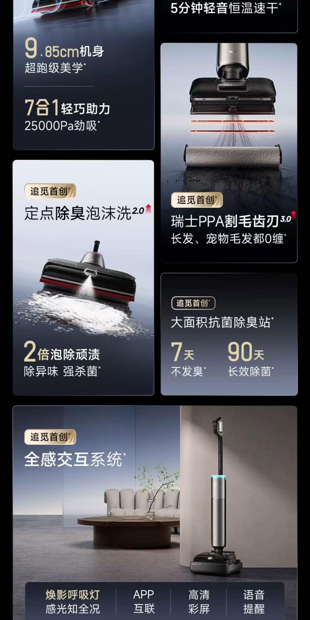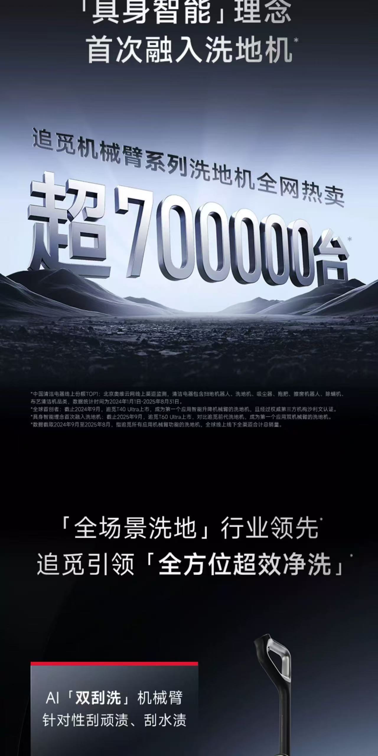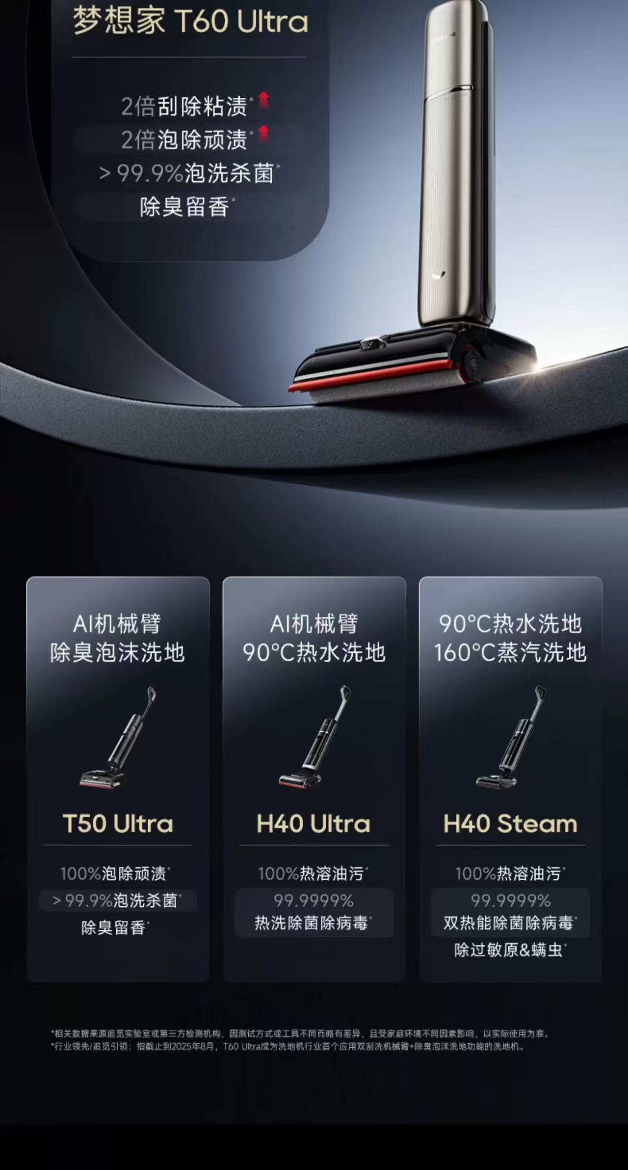 追觅双机械臂泡沫洗地机T60Ultra超薄躺平0缠毛0水渍自清洁拖地机