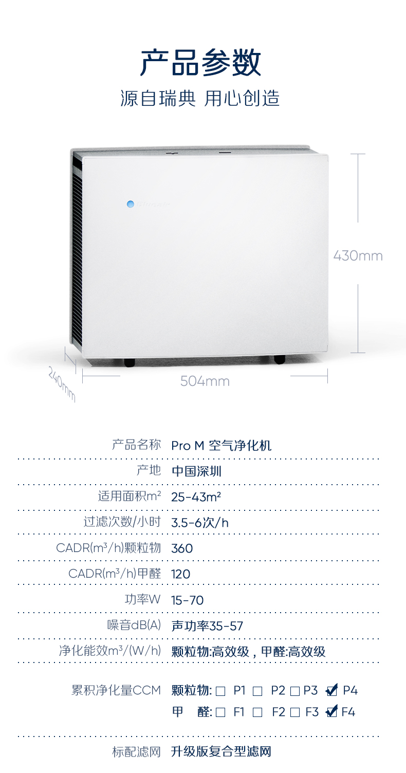 【6F】布鲁雅尔Blueair空气净化器家用除甲醛粉尘高效杀菌病毒办公室净化机ProM