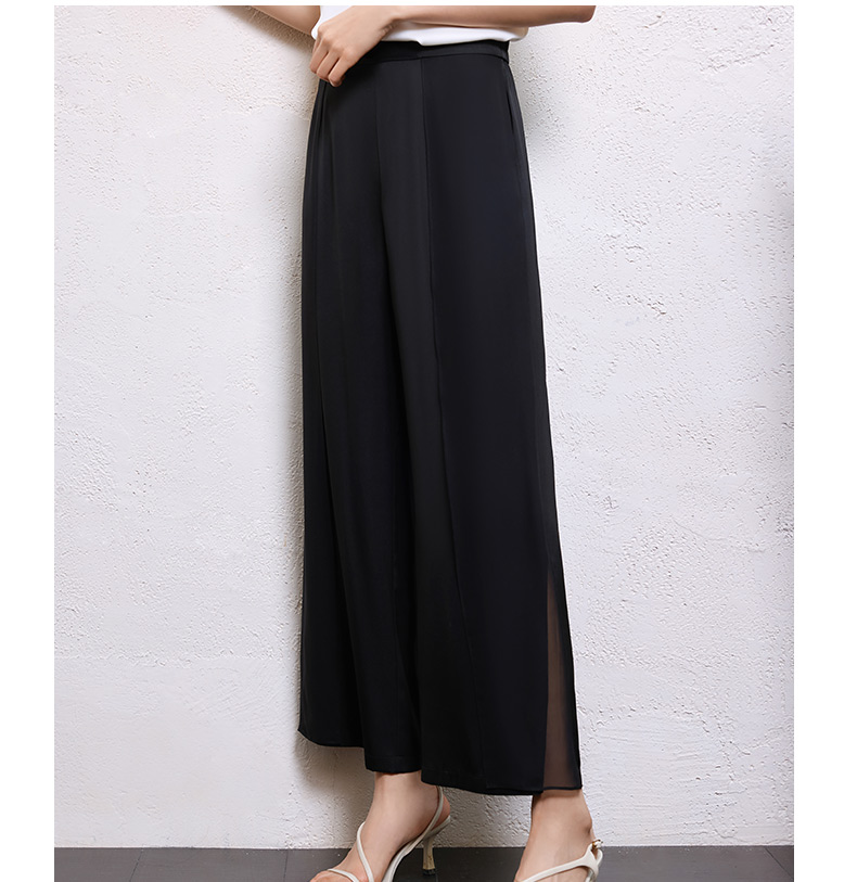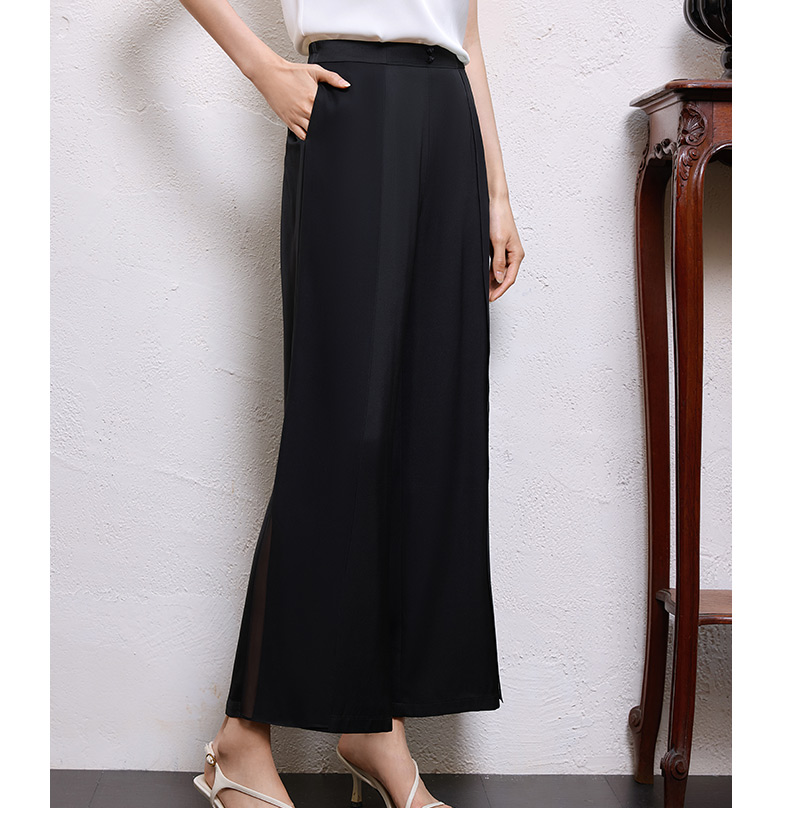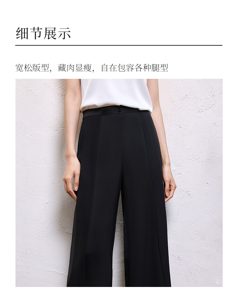 玳莎真丝阔腿裤宽松女2025年夏季新款松紧腰显瘦垂感休闲直筒裤 FB36310