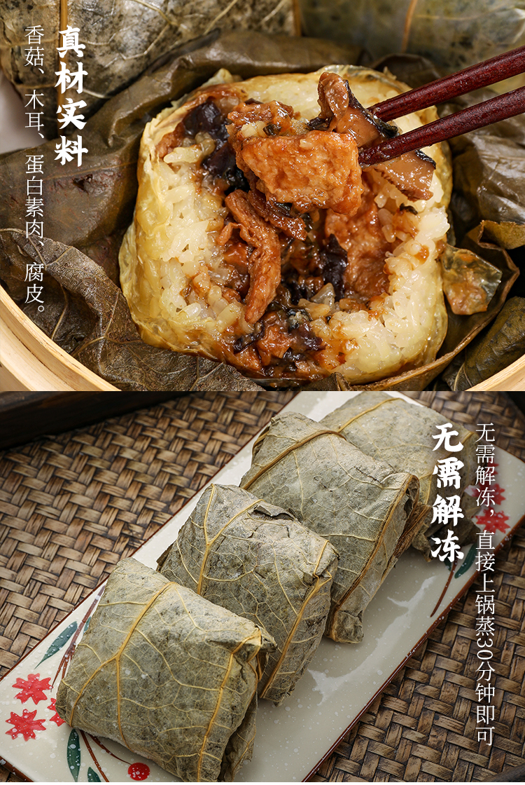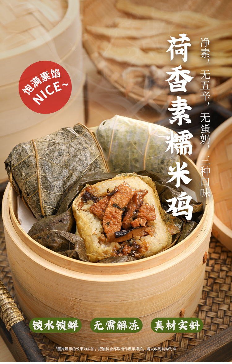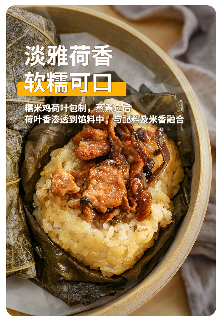 纯素荷叶糯米鸡,加热即食、美味方便【包邮,1个仅约4元】(请放冰箱急冻保存)