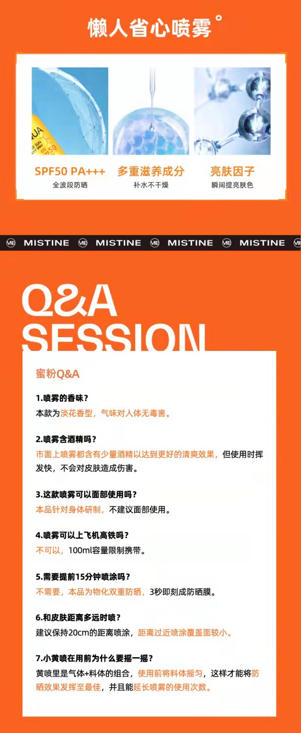 【五一大促】泰国蜜丝婷Mistine 多重防晒隔离喷雾 100ml 防水防汗黄防晒喷 SPF50+PA+++ SPA50