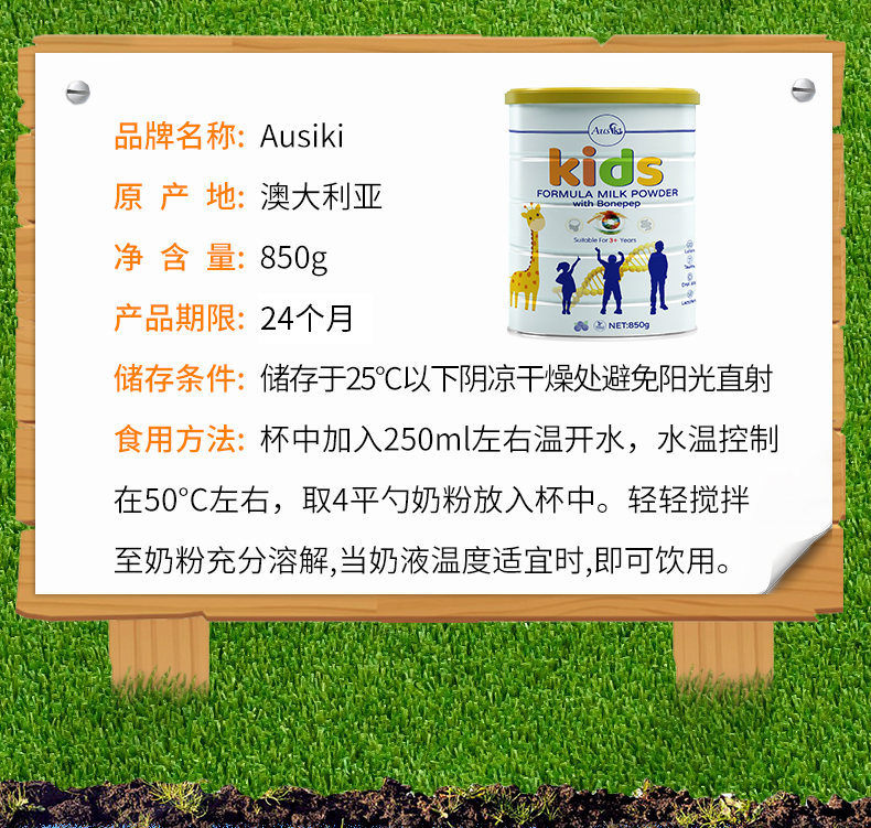 【保税仓】澳洲 Ausiki 澳爱优长颈鹿护眼益智长高儿童奶粉850g