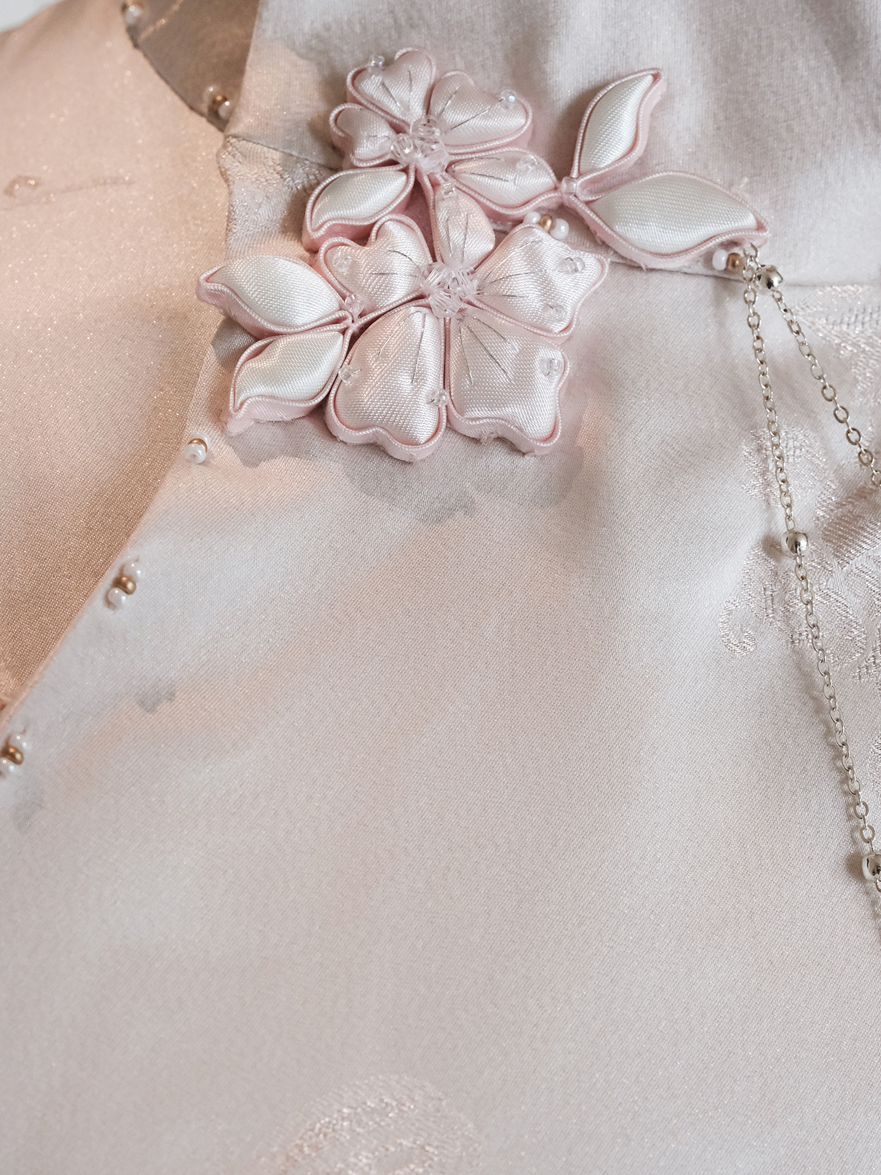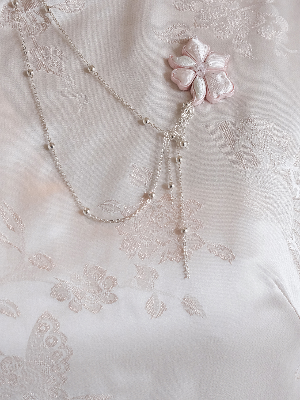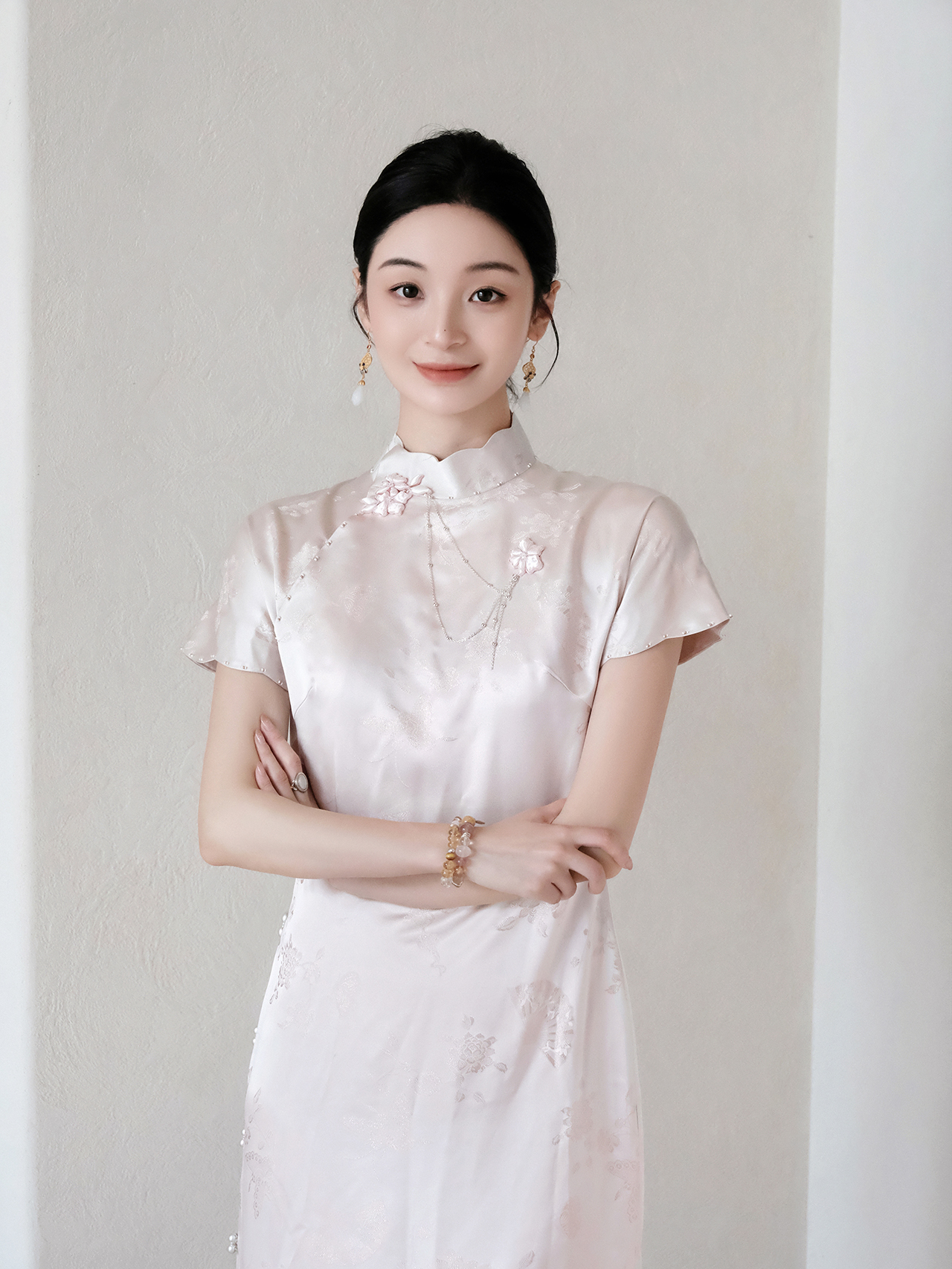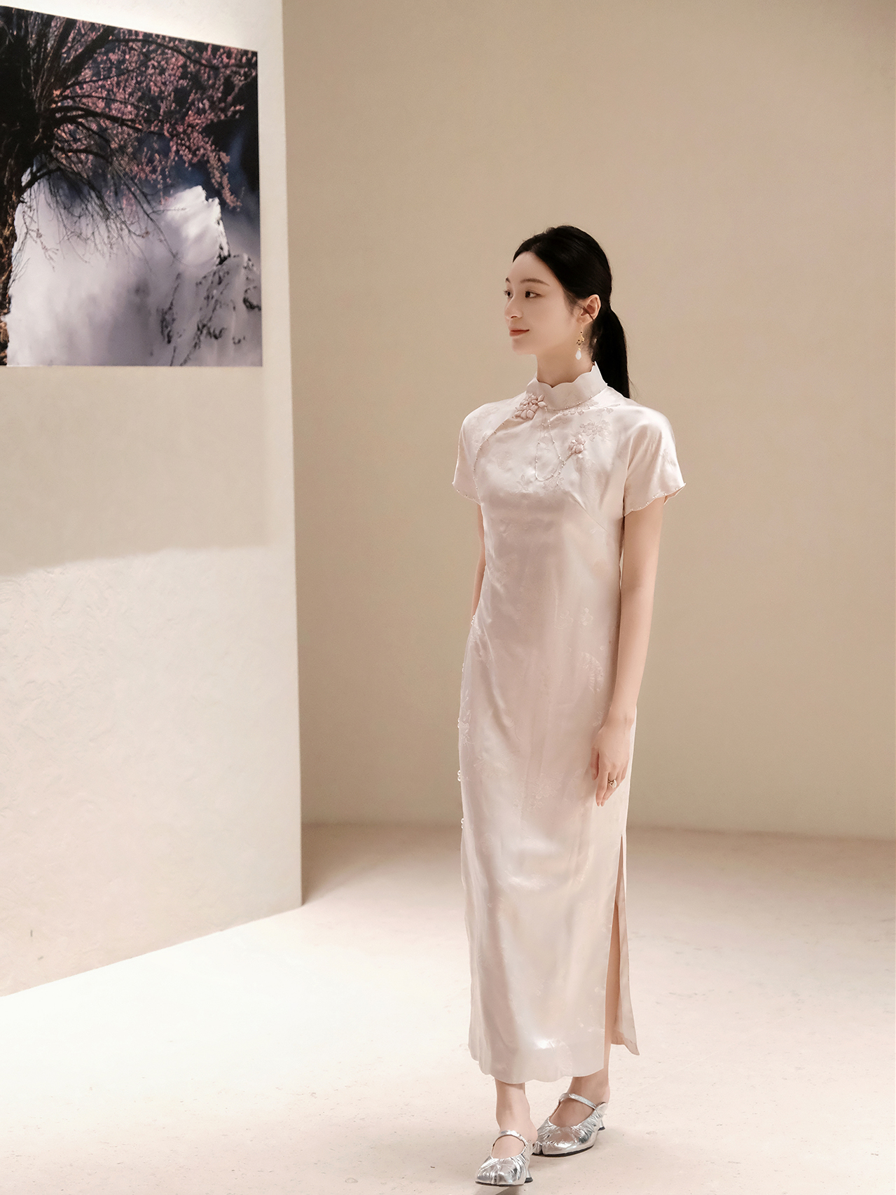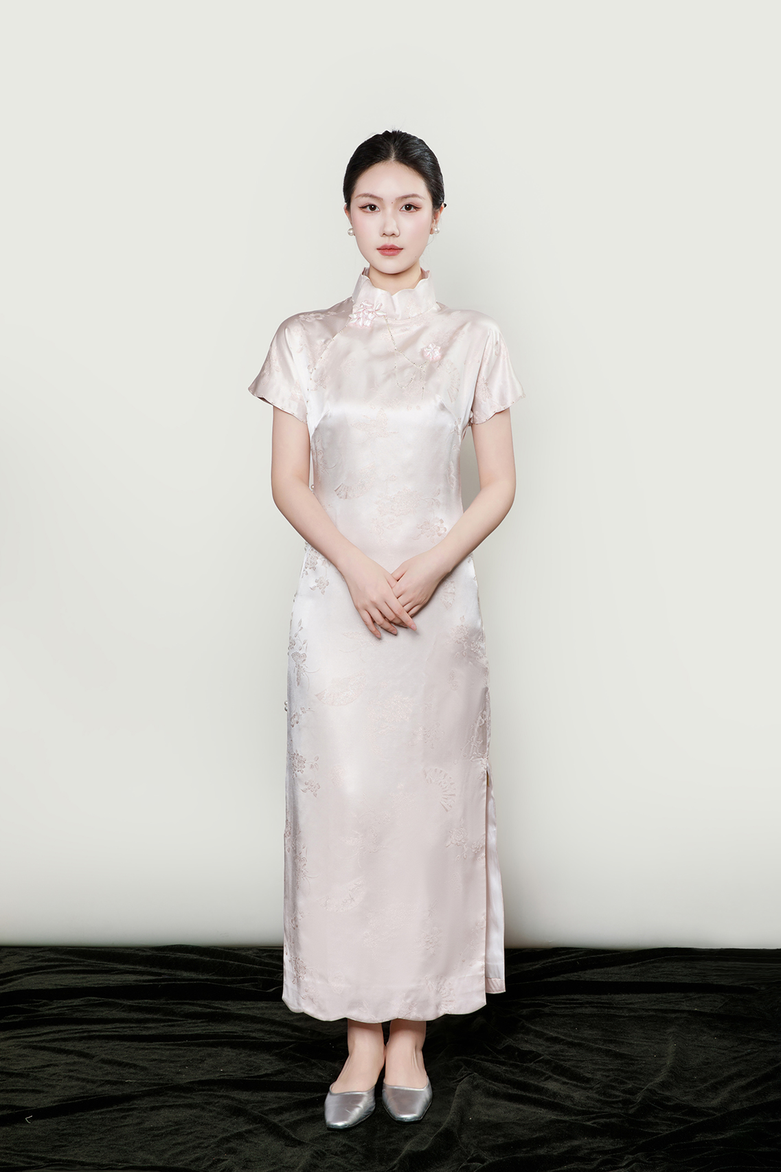 盛唐牡丹 |梅兰竹菊真丝冠乐皱斜襟旗袍裙