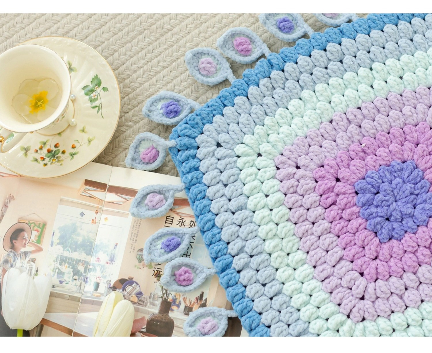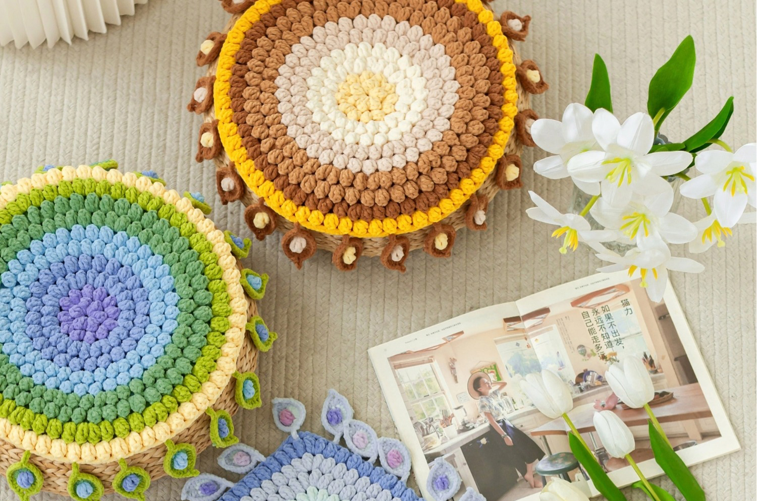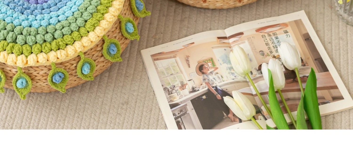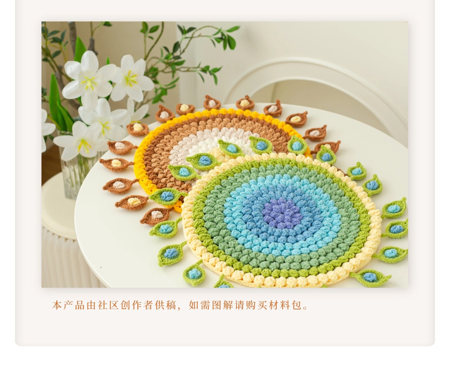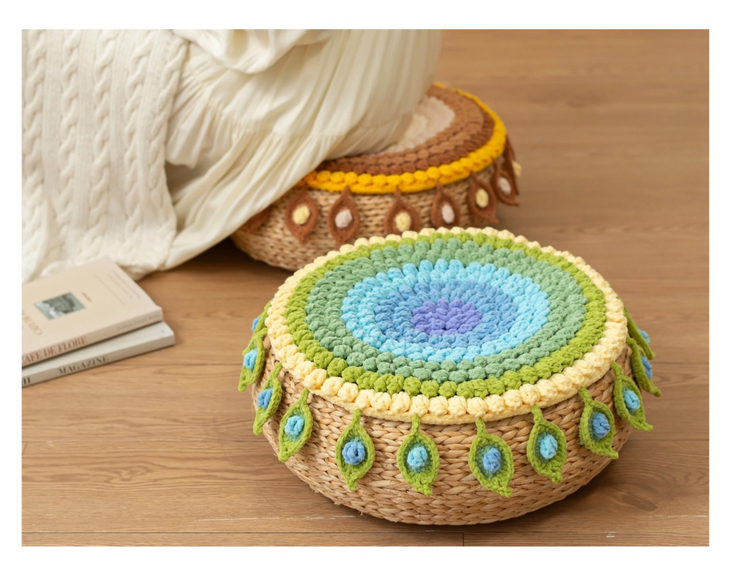 苏苏姐家孔雀羽坐垫手工diy编织钩针毛线团自制坐垫材料包