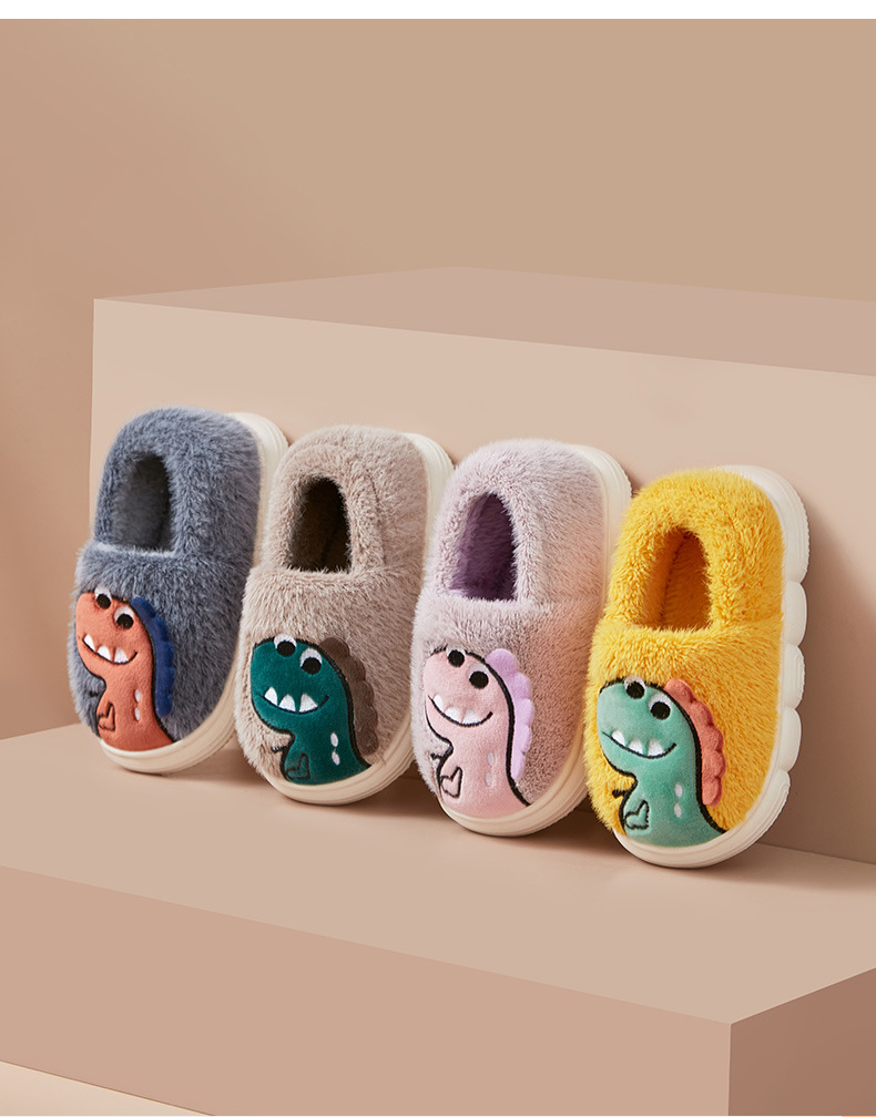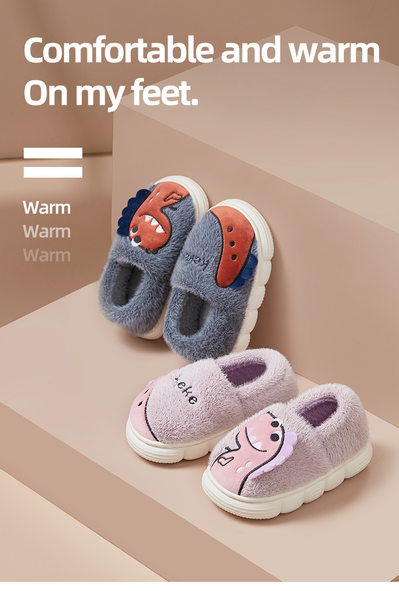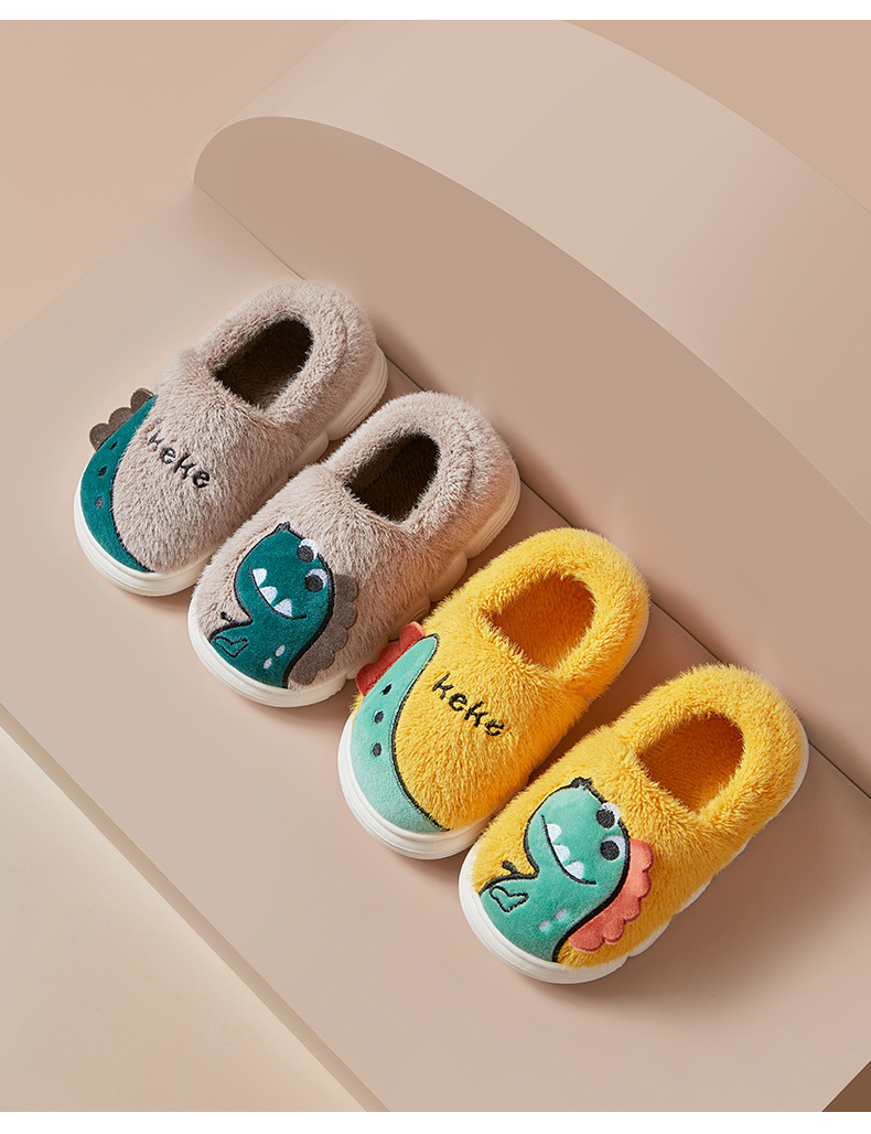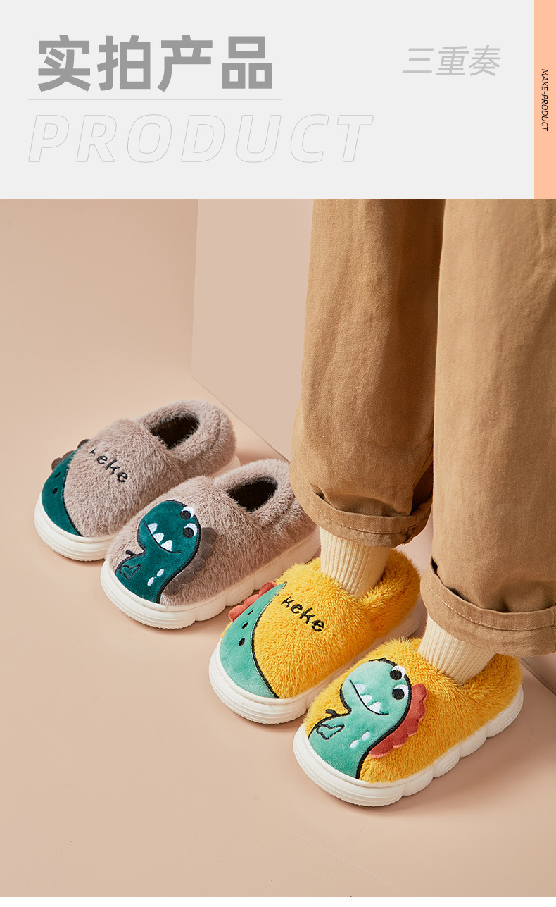 【全新升级❗️窠窠恐龙可爱儿童棉拖鞋】儿童踩屎感拖鞋包跟加厚保暖,轻盈可爱脚感暖和不闷脚,室内宝宝棉拖鞋防滑秋冬拖鞋女QQ