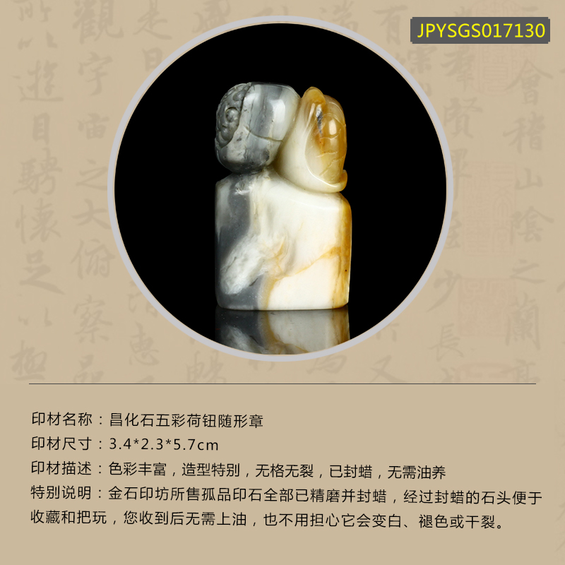 孤品017130-昌化石五彩荷钮随形章-3.4*2.3*5.7cm