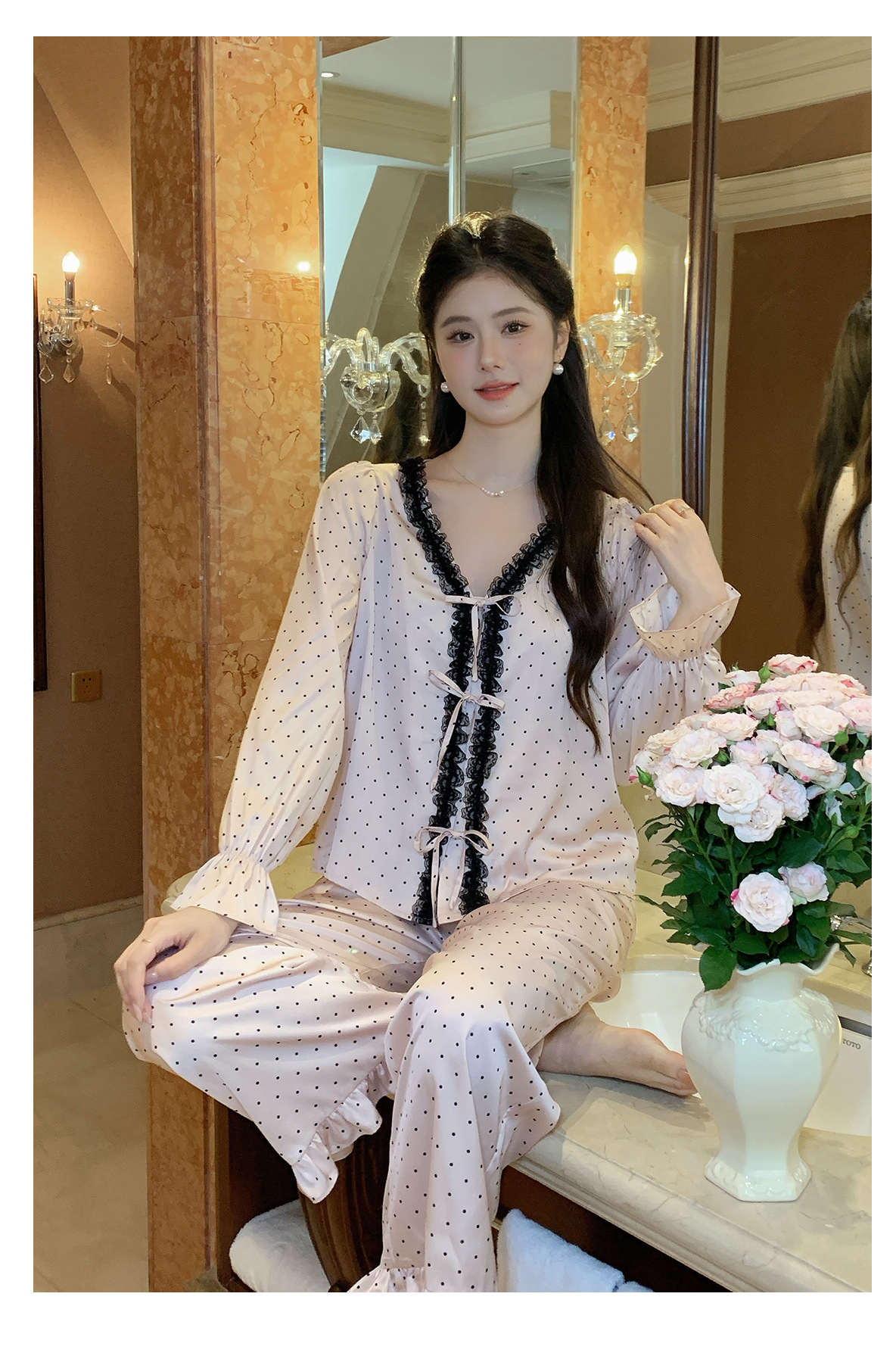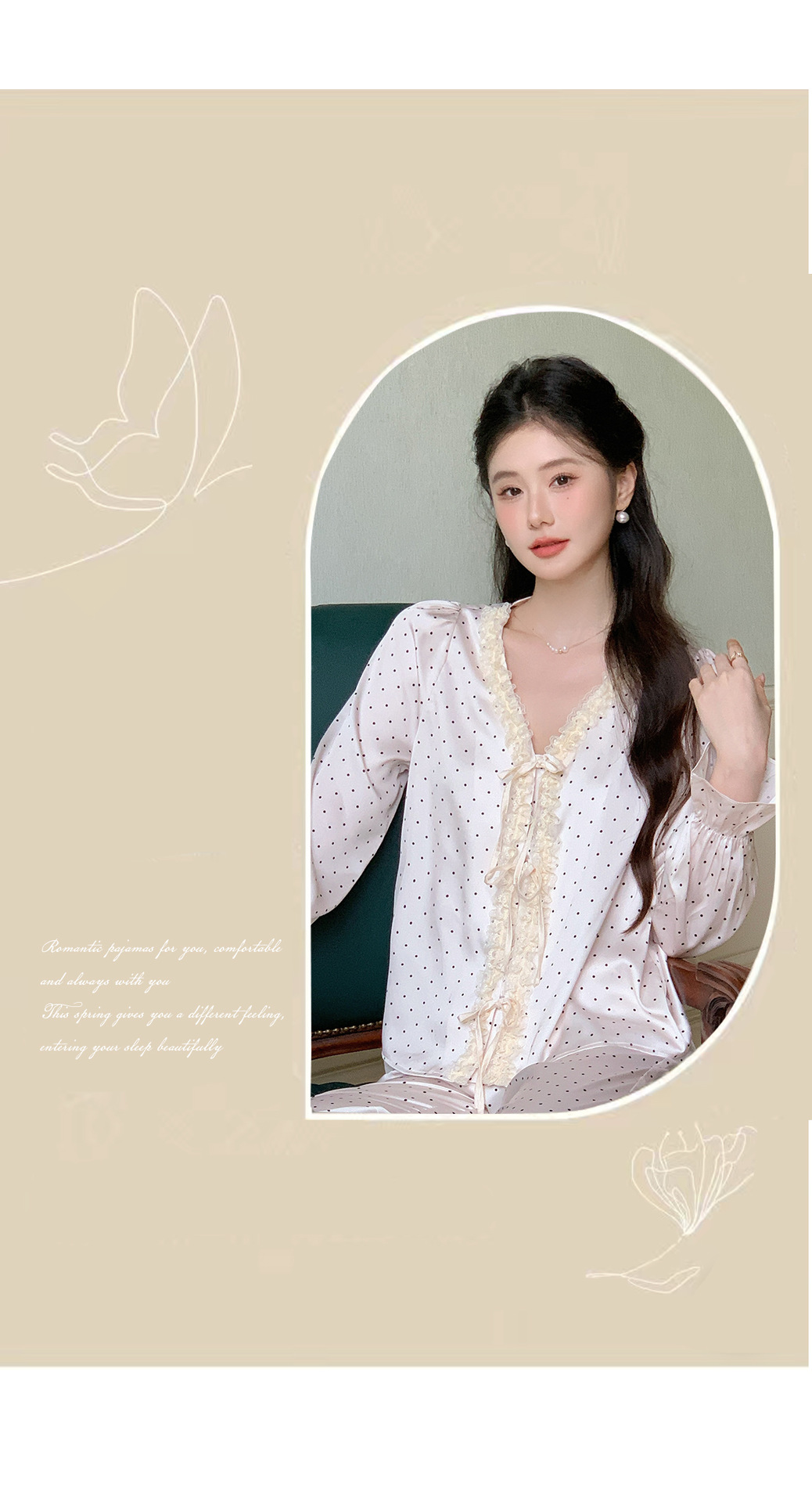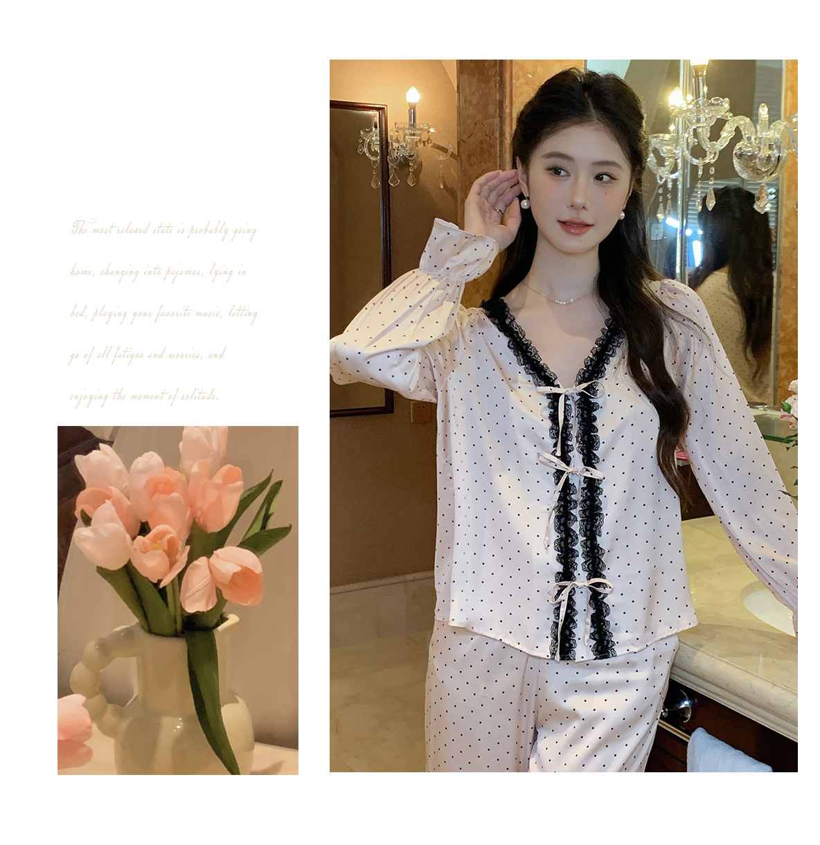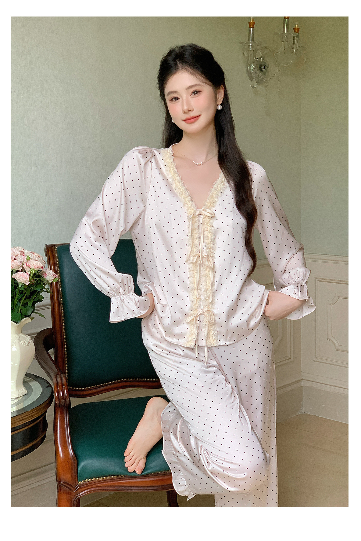 【秋冬严选❗️法式高级感家居服套装】冰丝睡衣睡裤女长袖舒适新款薄款可外穿