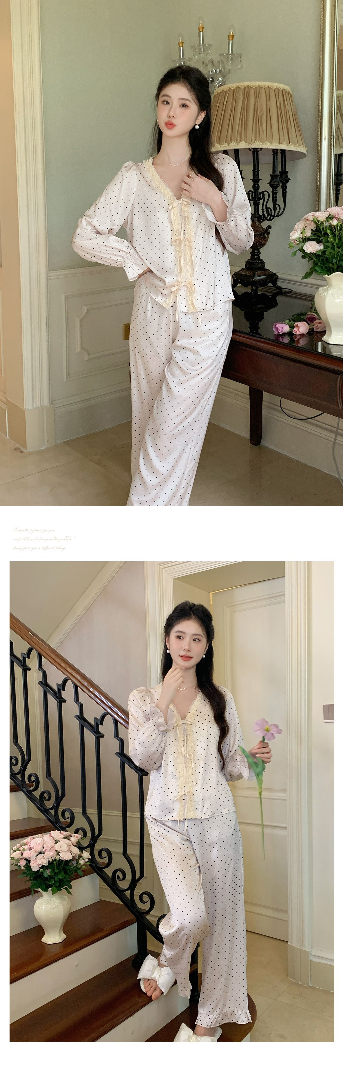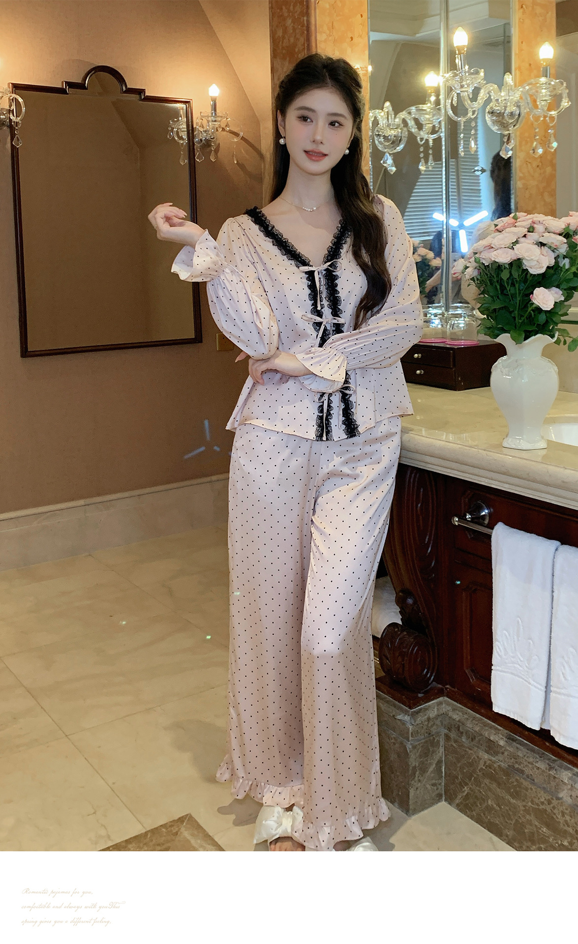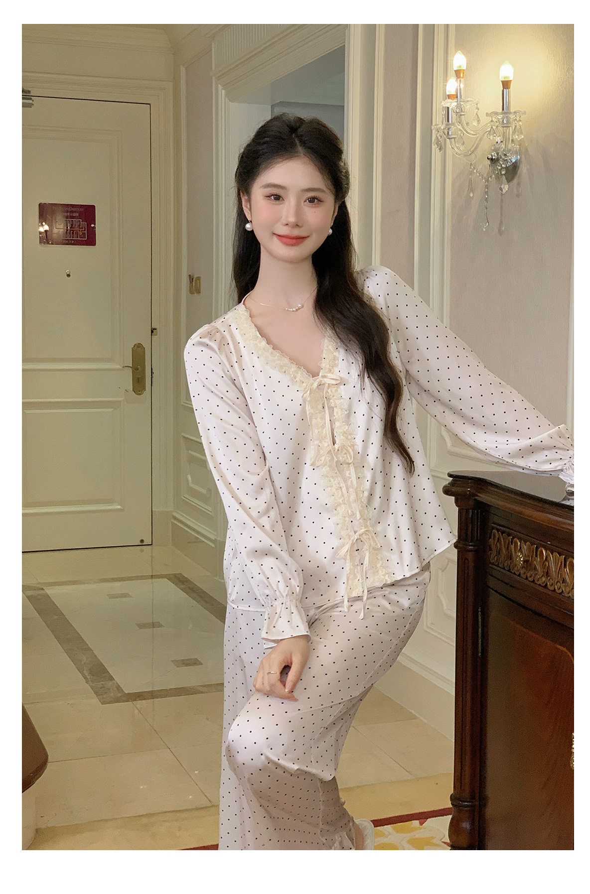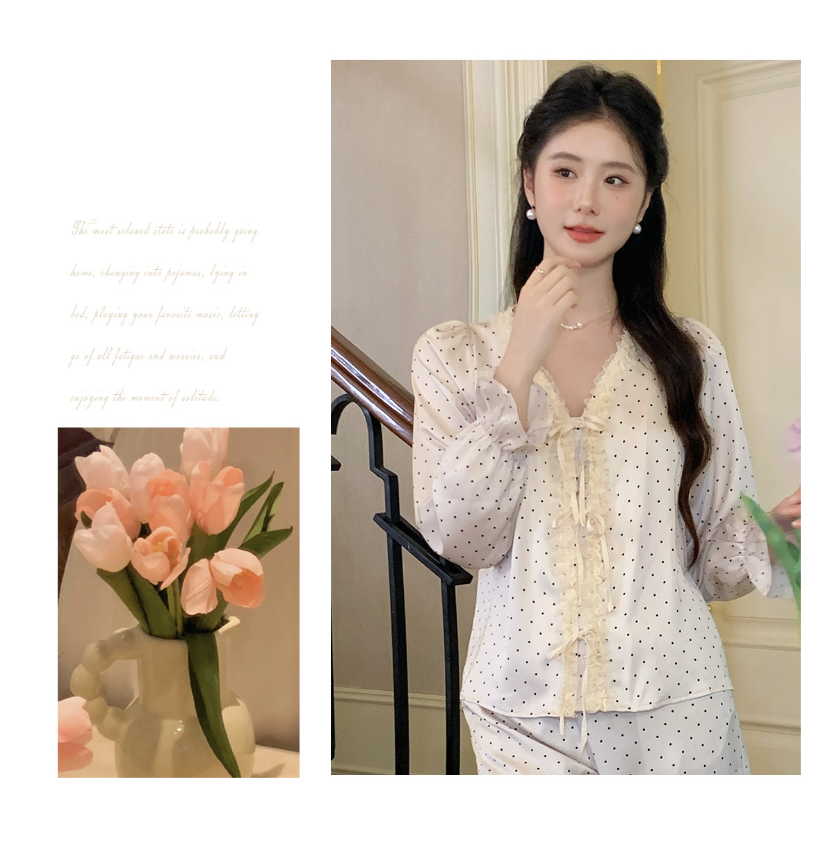 【秋冬严选❗️法式高级感家居服套装】冰丝睡衣睡裤女长袖舒适新款薄款可外穿