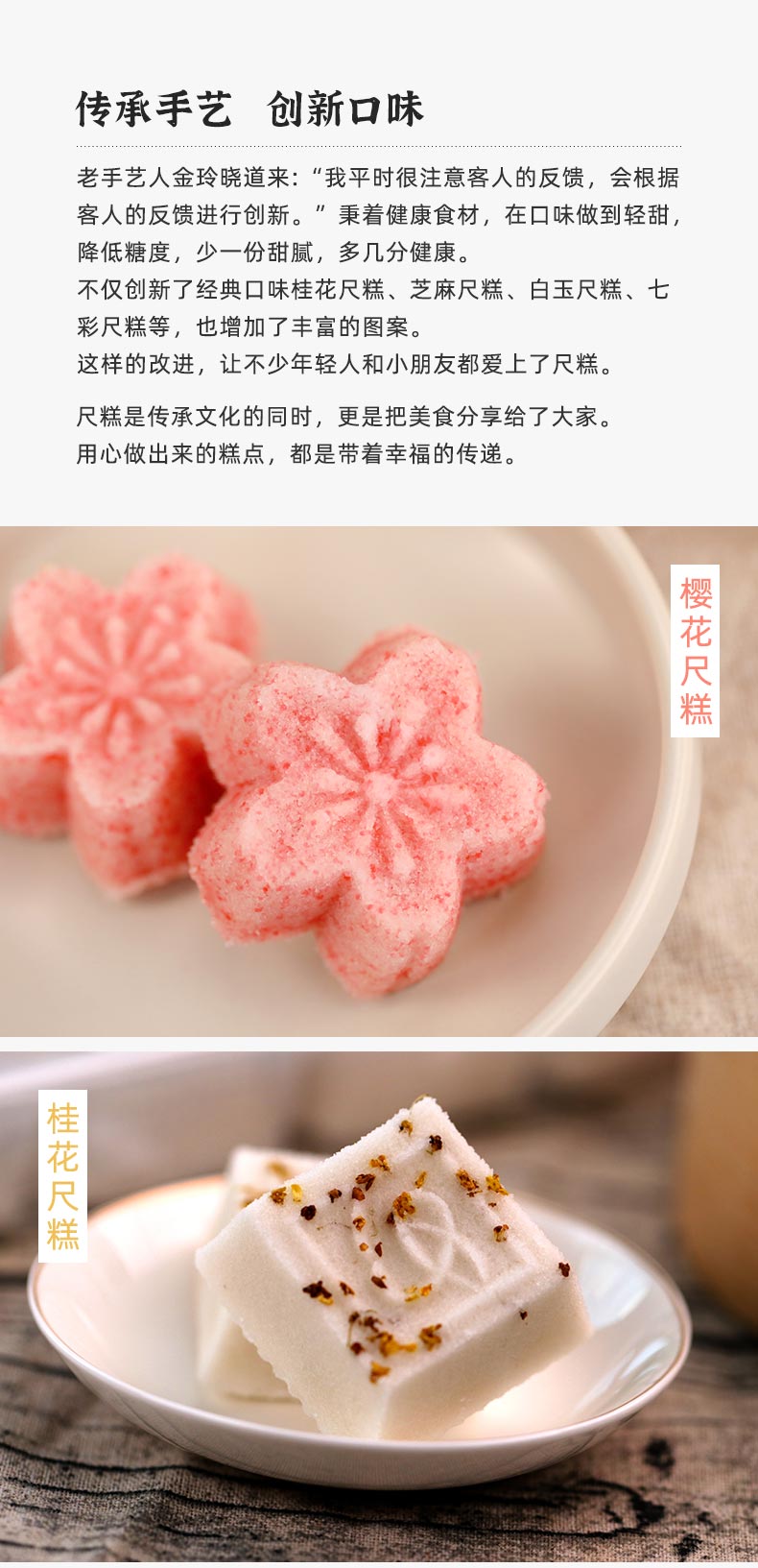 优选新品 逢食 非遗尺糕(桂花、芝麻、白玉、果蔬七彩、樱花)多种口味,手工制作,轻甜口感,一口满满幸福味!