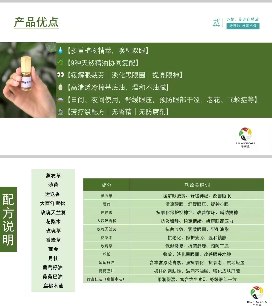 用法:早晚各一次,取适量,涂抹眼周,按摩吸收,舒缓眼睛疲劳。