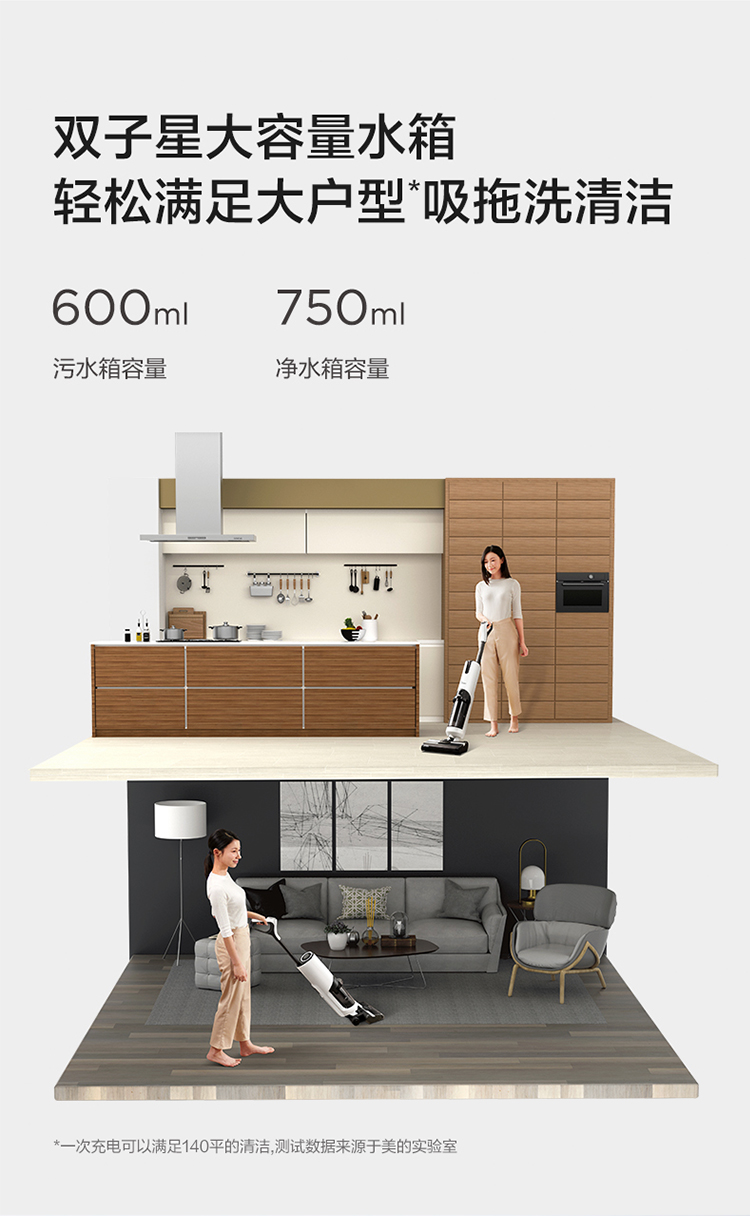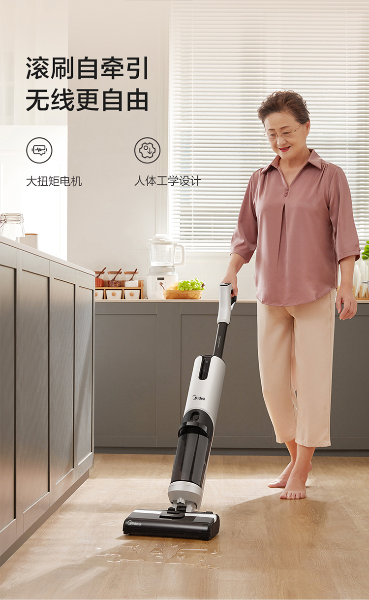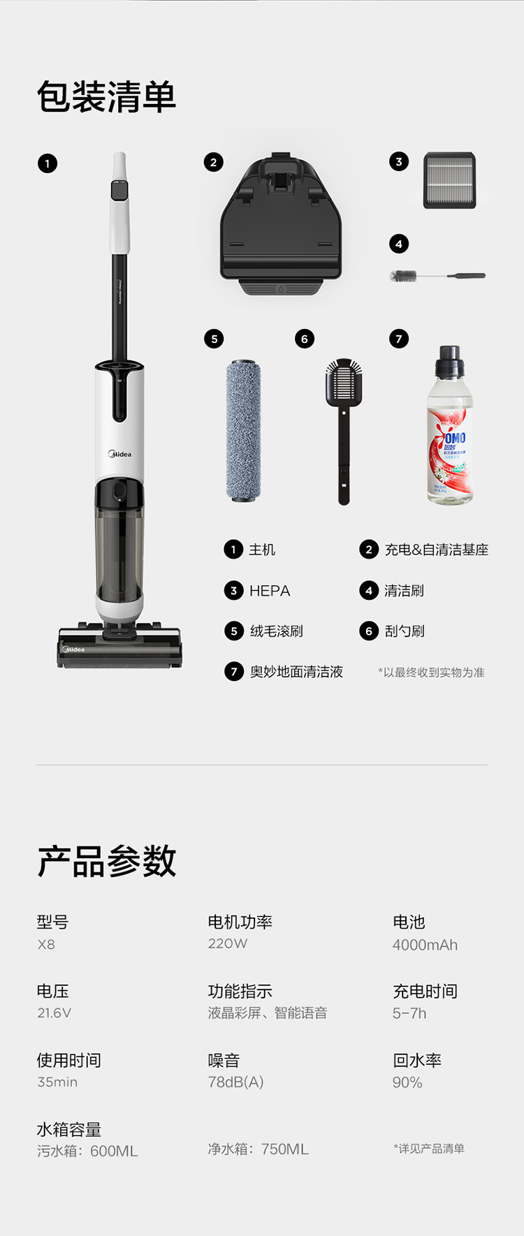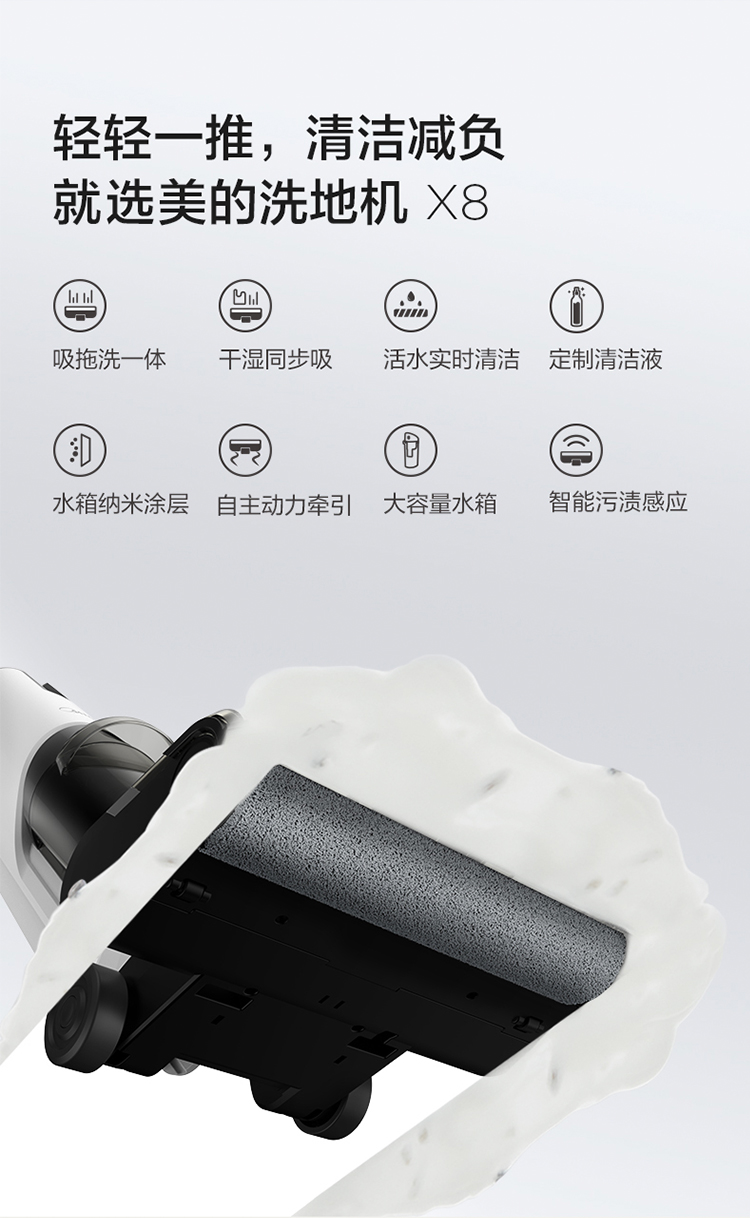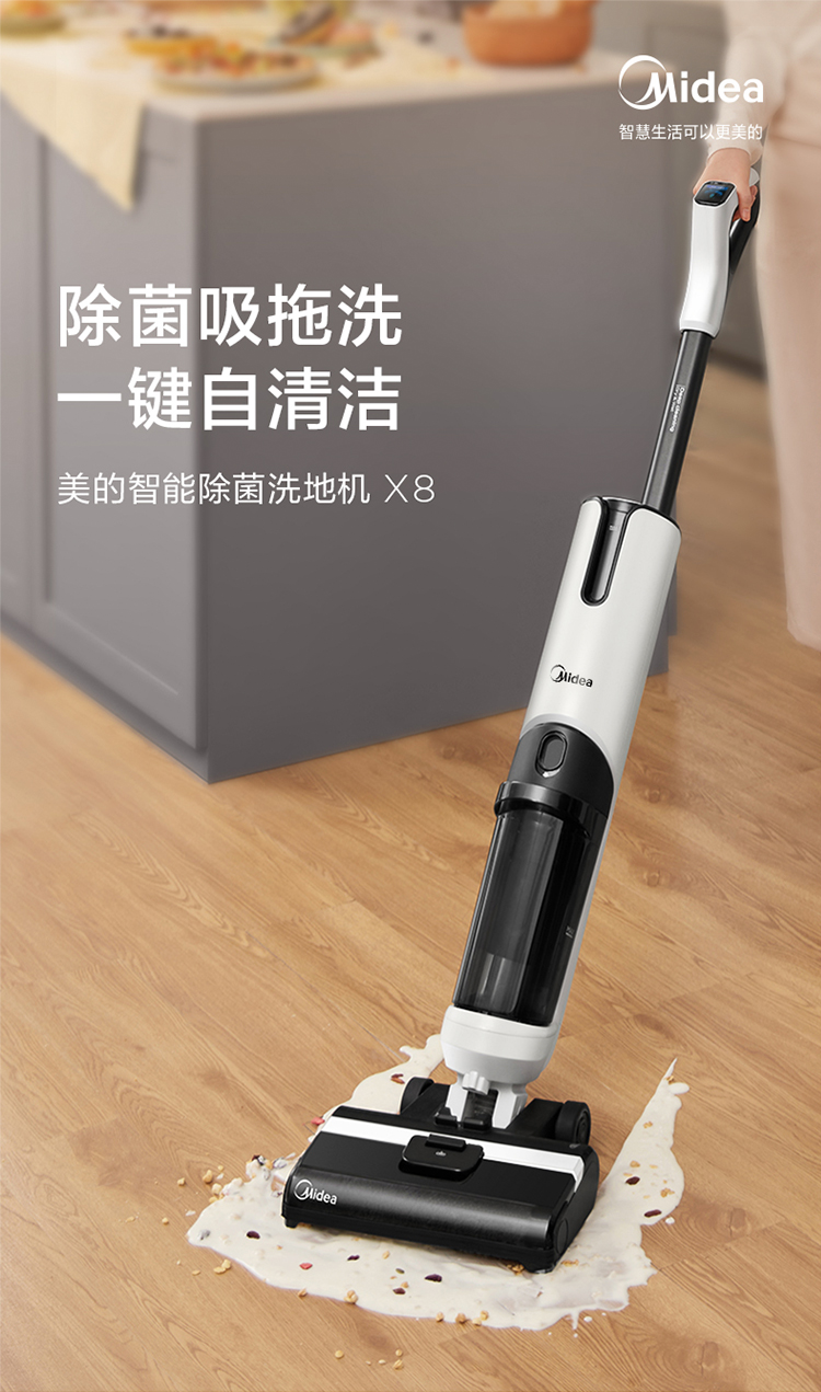 美的X8洗地机家用无线智能自清洁手持式吸尘器吸尘拖地洗地一体机