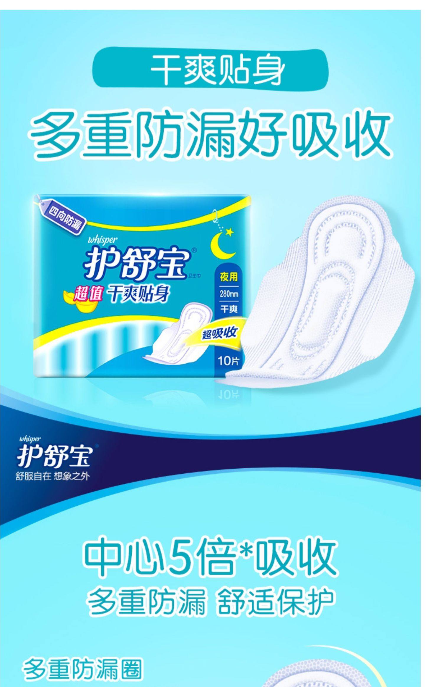 护舒宝网面卫生巾280mm*10片超值干爽贴身日夜用 姨妈巾