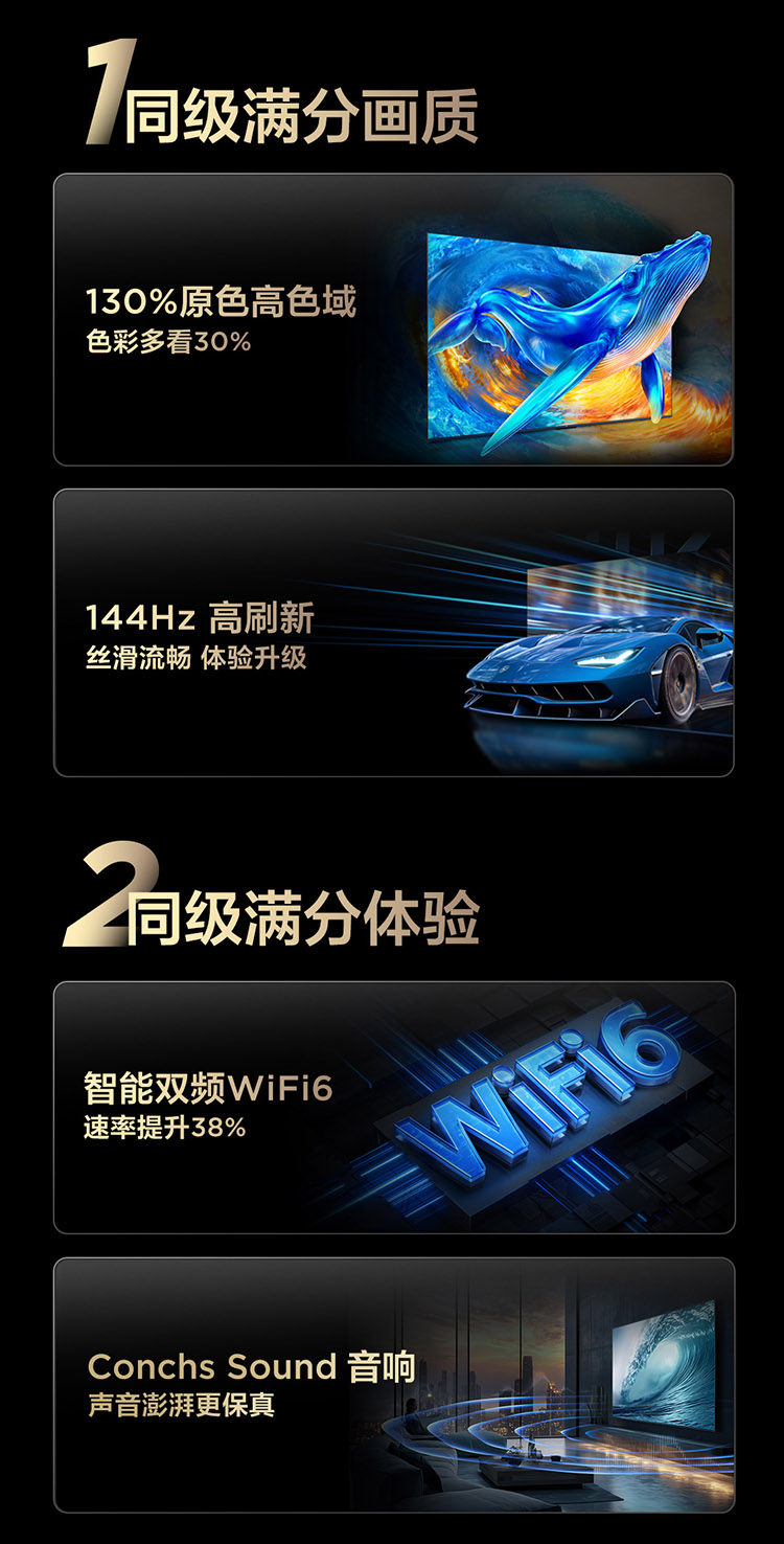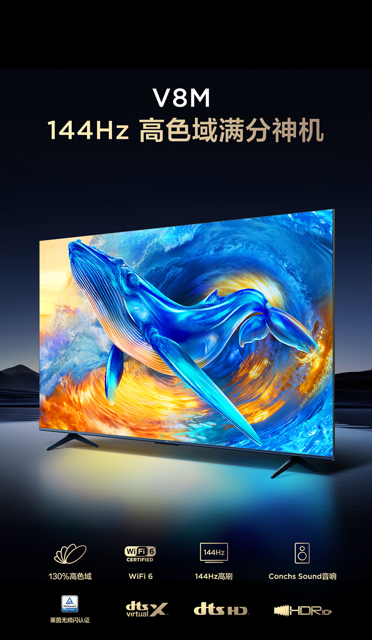 【新品上市】TCL电视 75V8M 75英寸 144Hz 高色域 MEMC防抖 WiFi6 2GB+32GB大内存电视